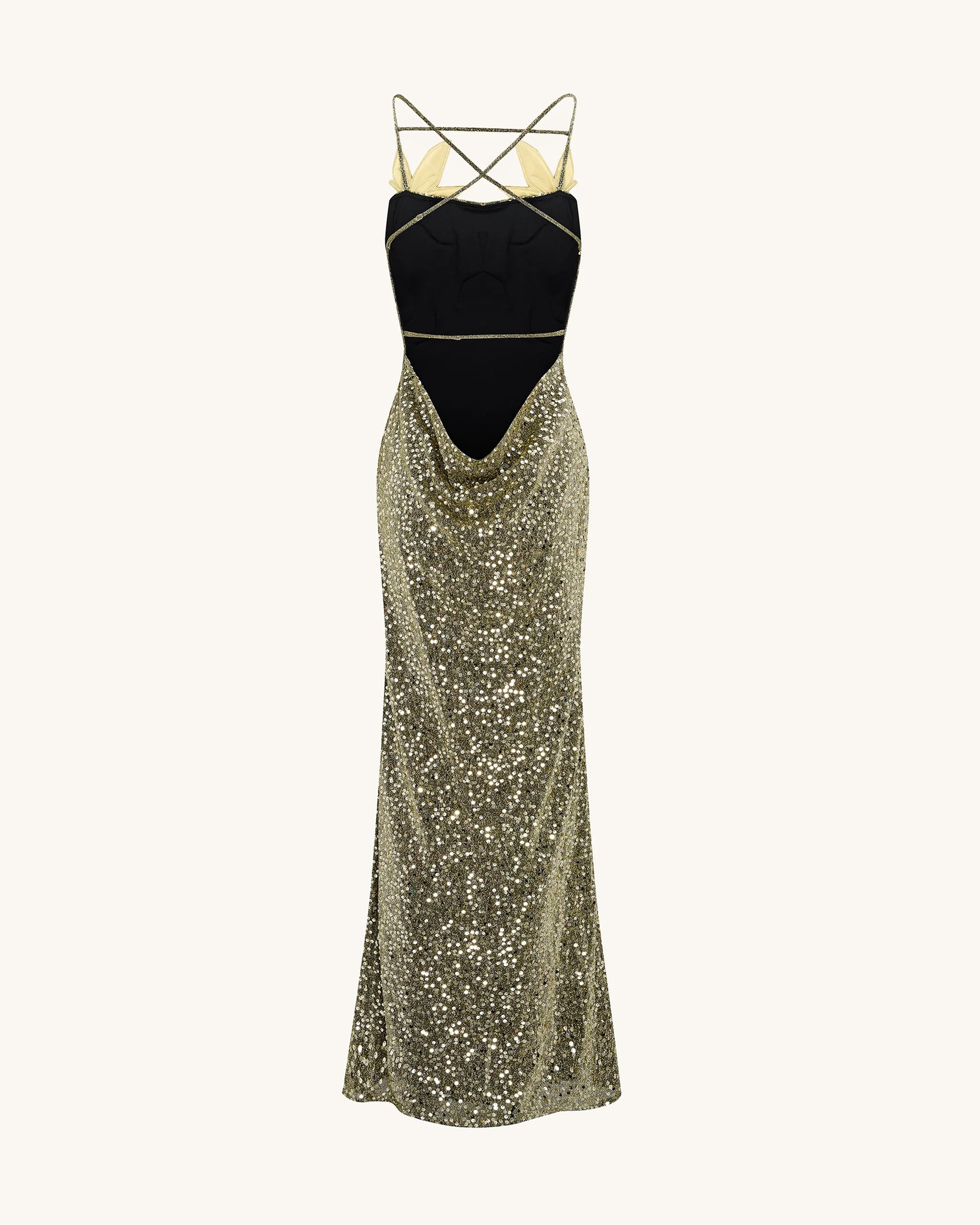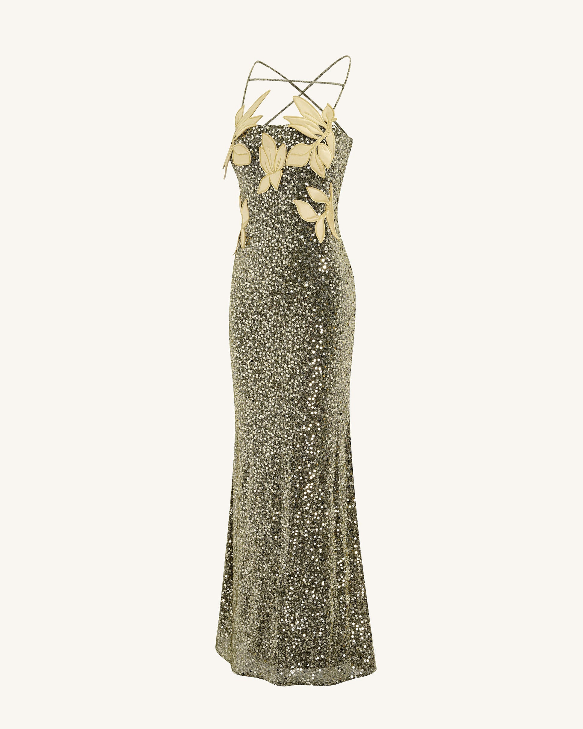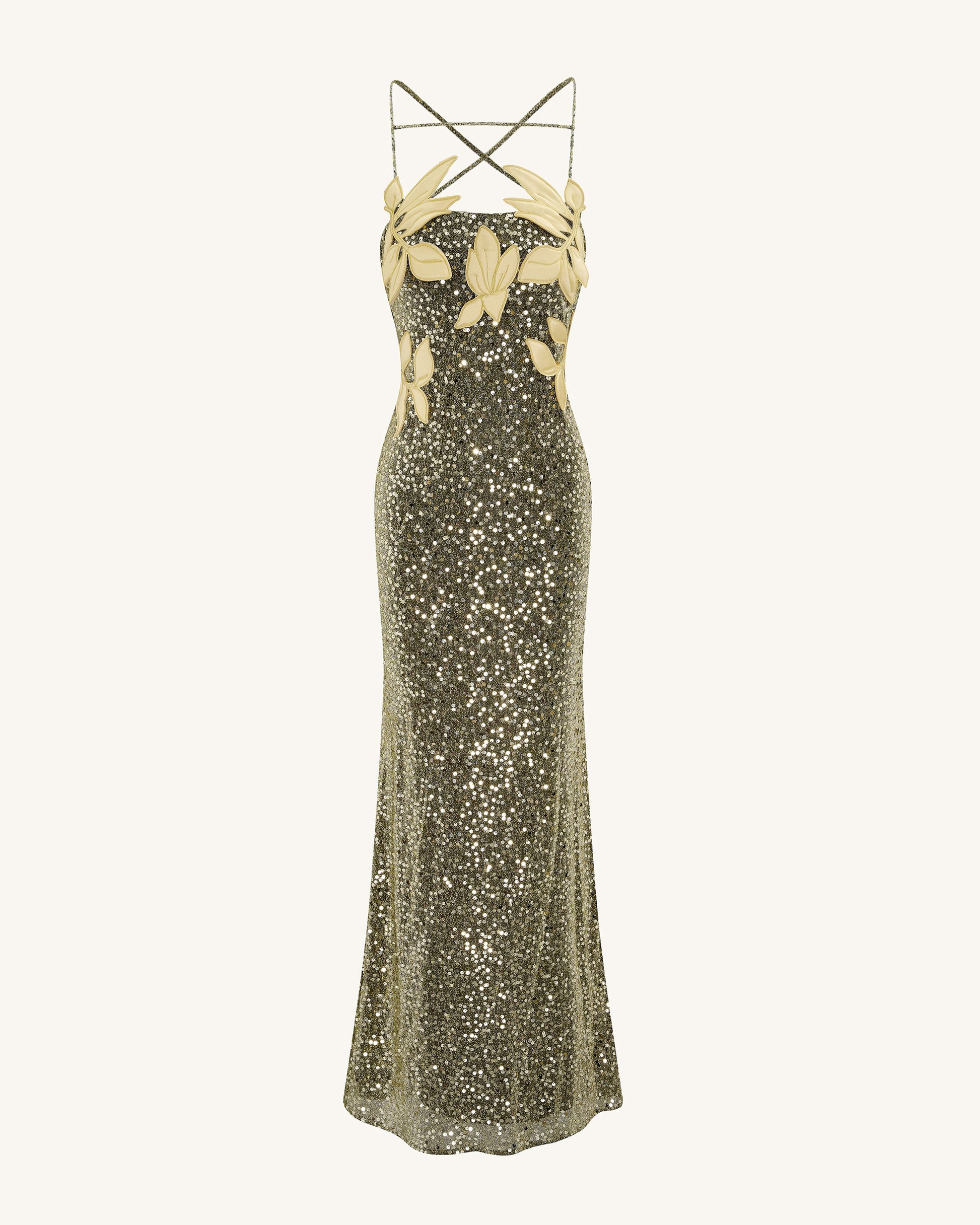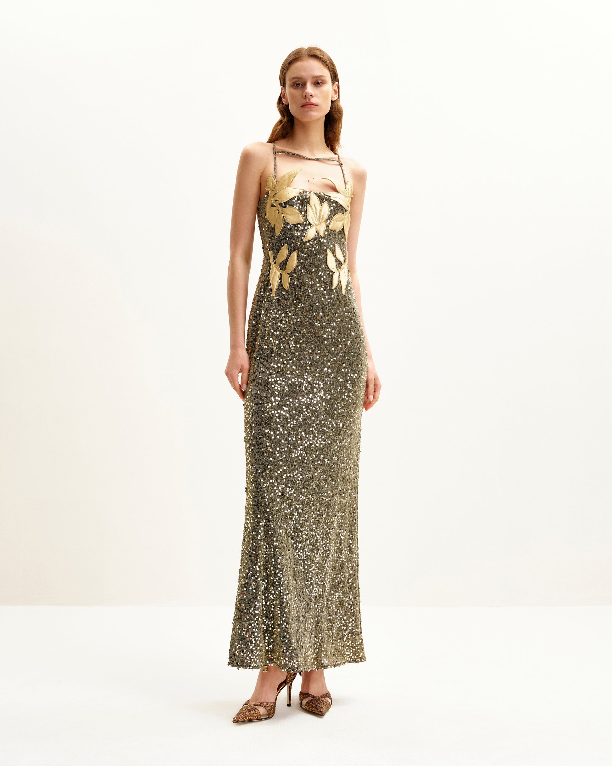 Araminta Sequined Gown with Floral Details - Gold