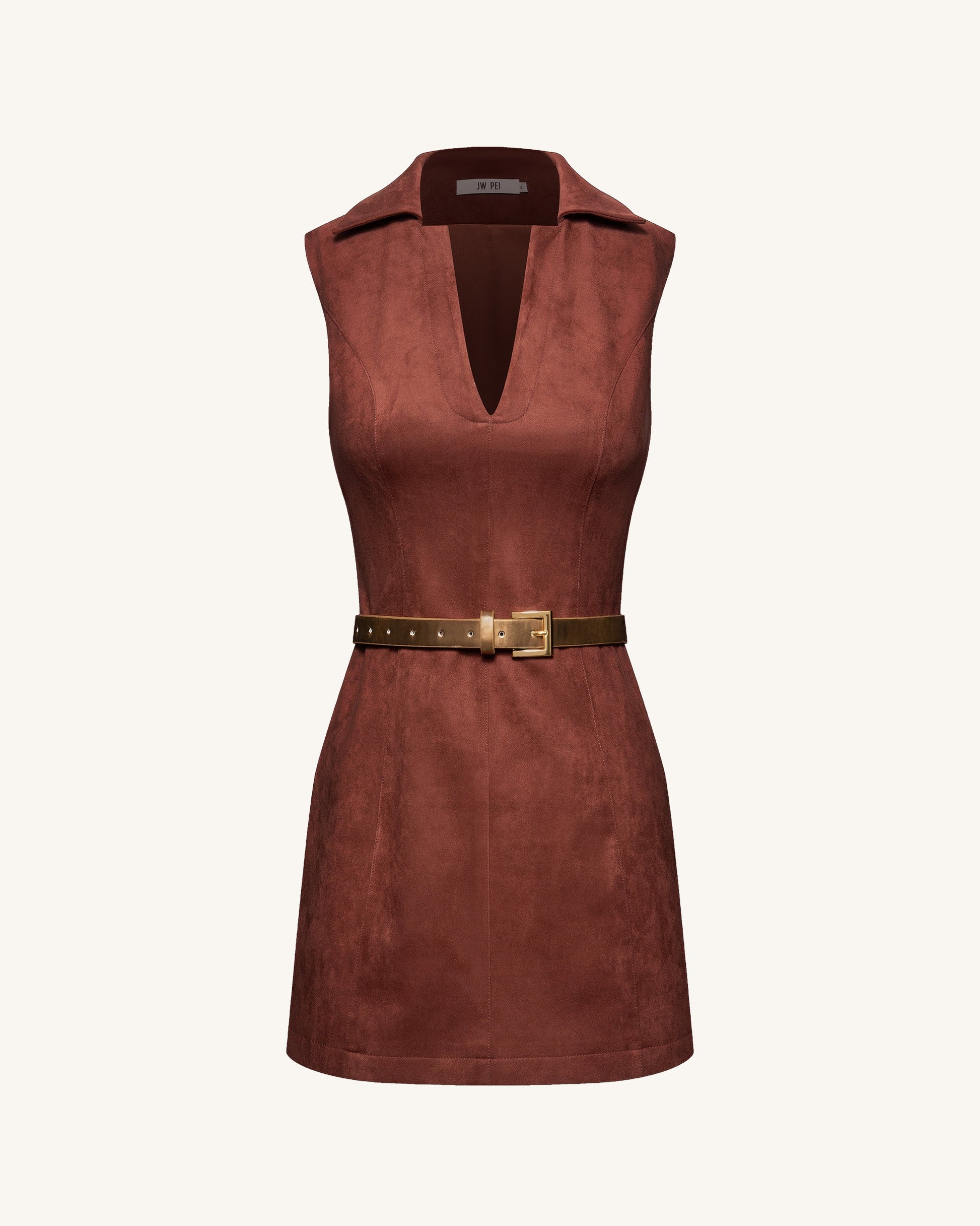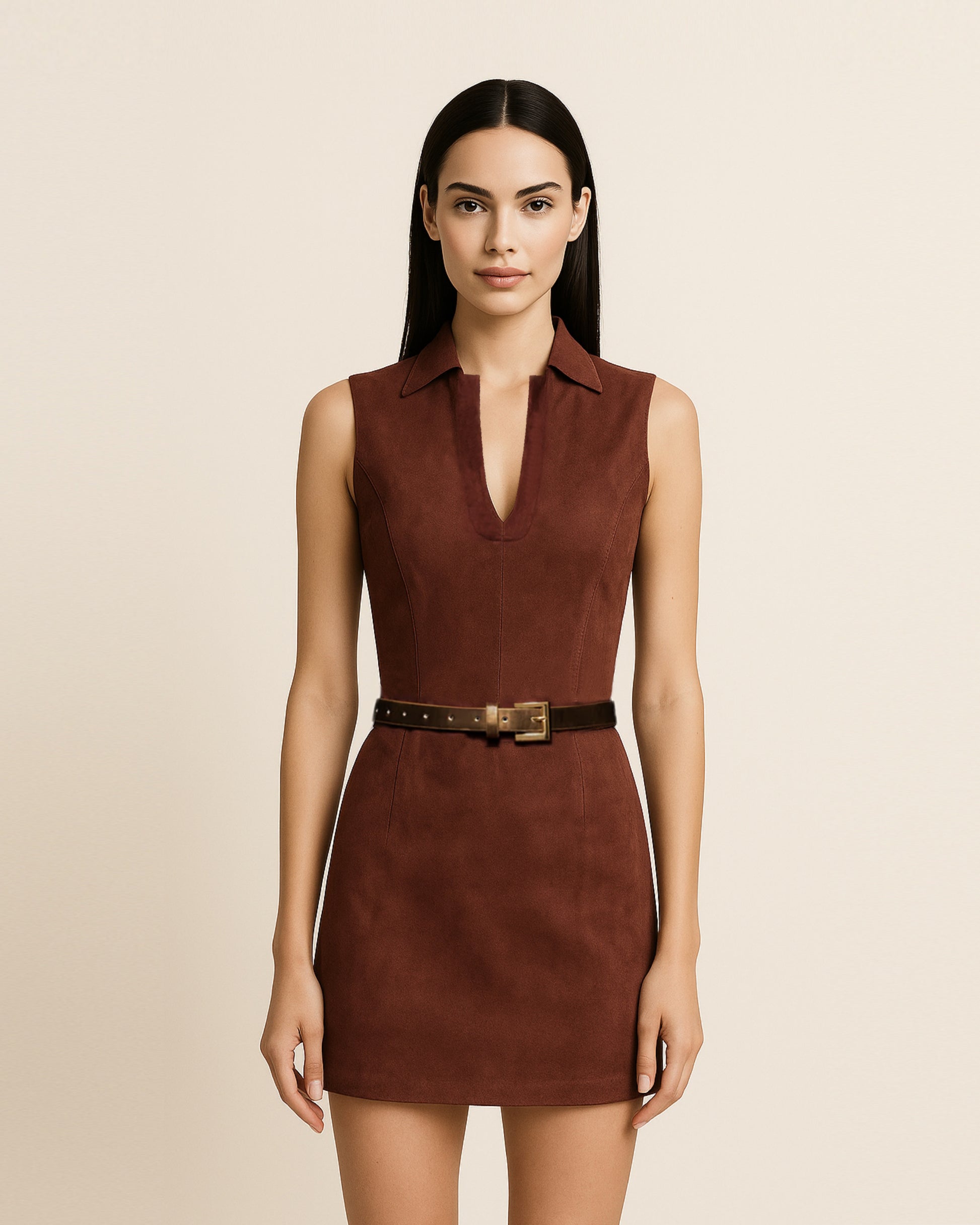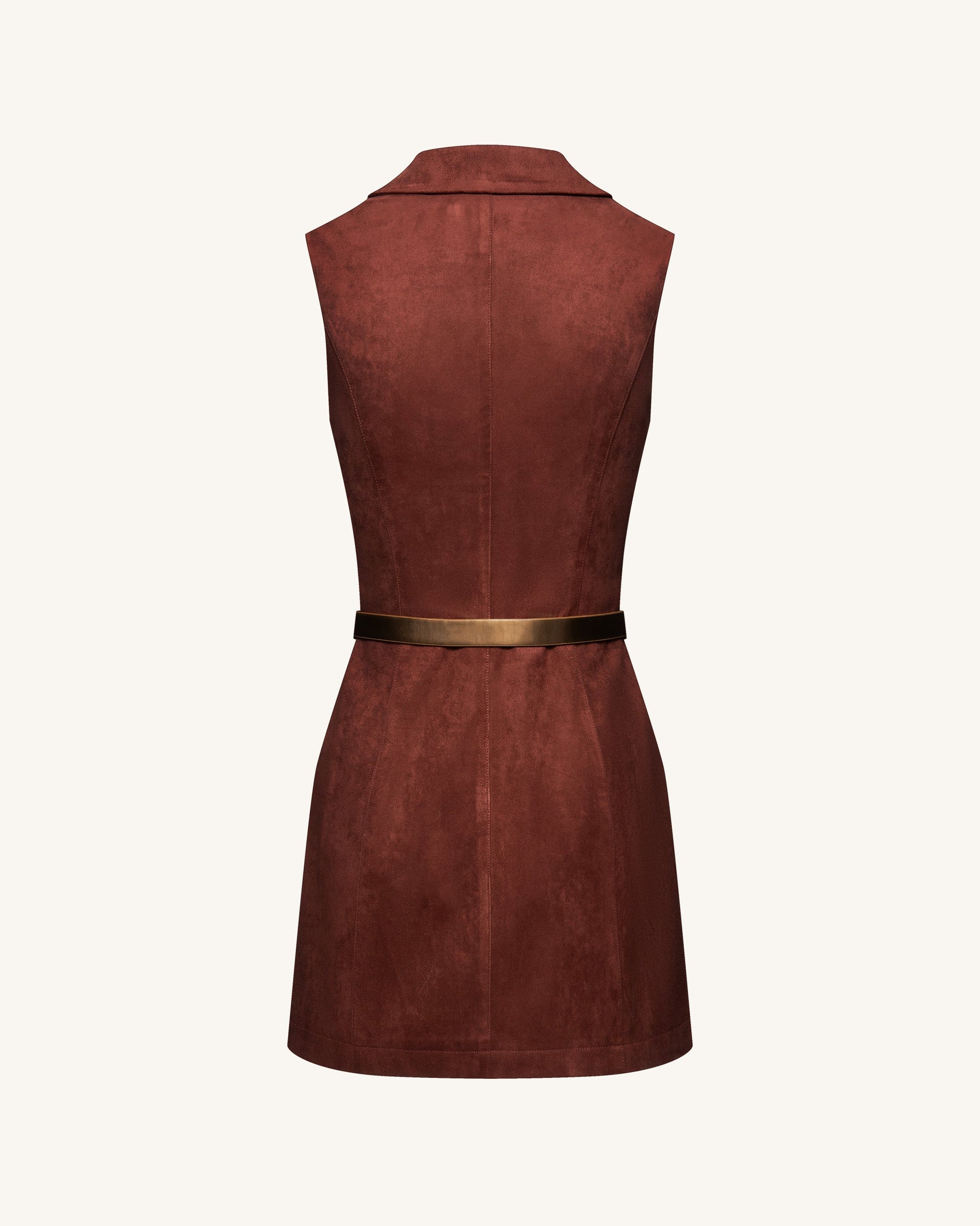 Ariana Sleeveless Suedes Mini Dress - Burgundy