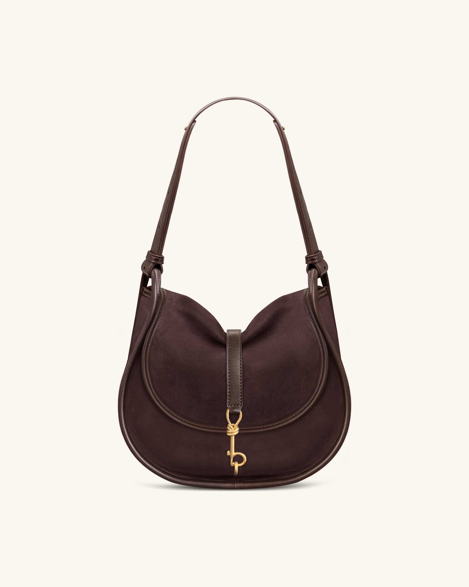 Arla Small Faux Suede Hobo Bag - Chocolate