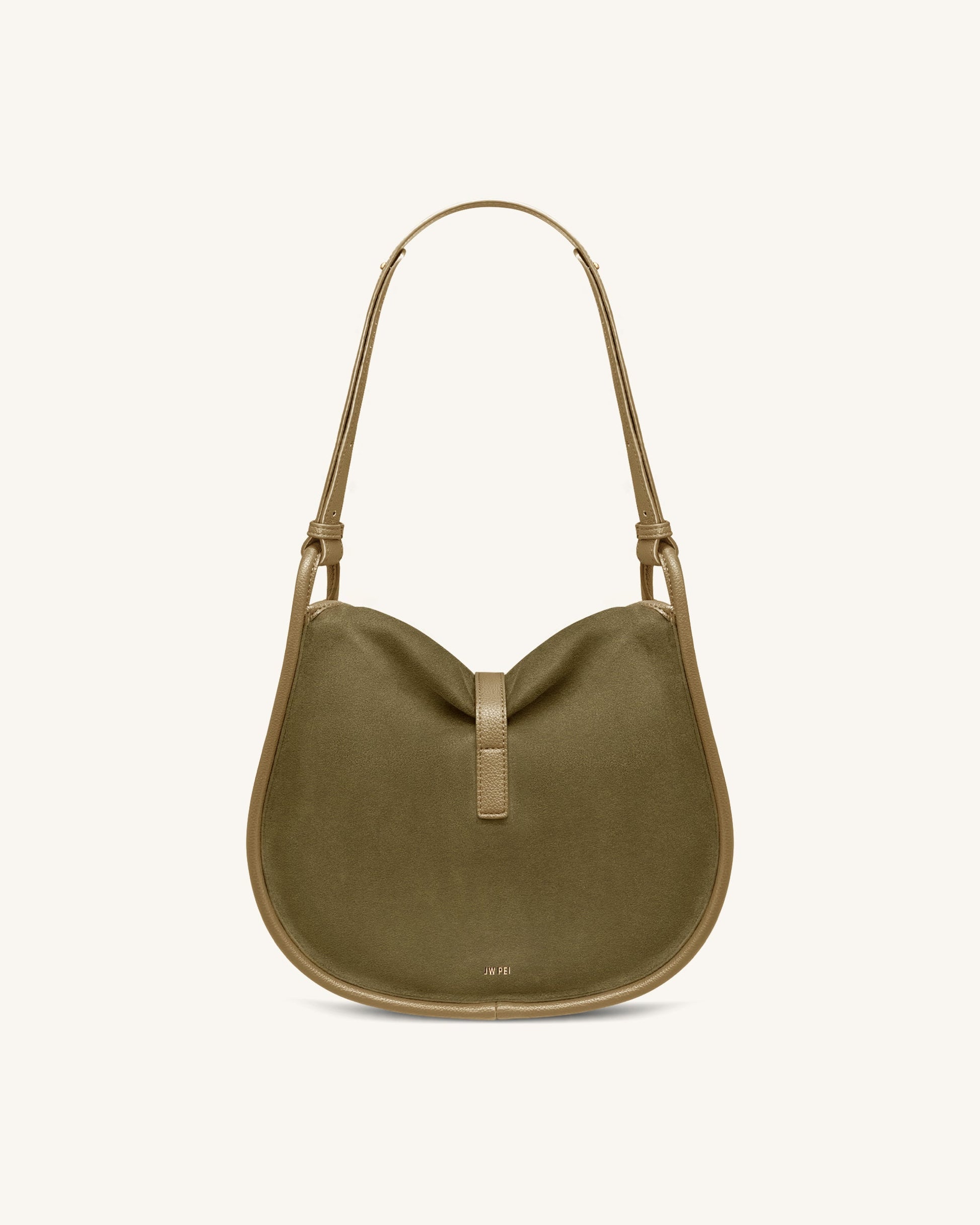 Arla Small Faux Suede Hobo Bag - Olive Green