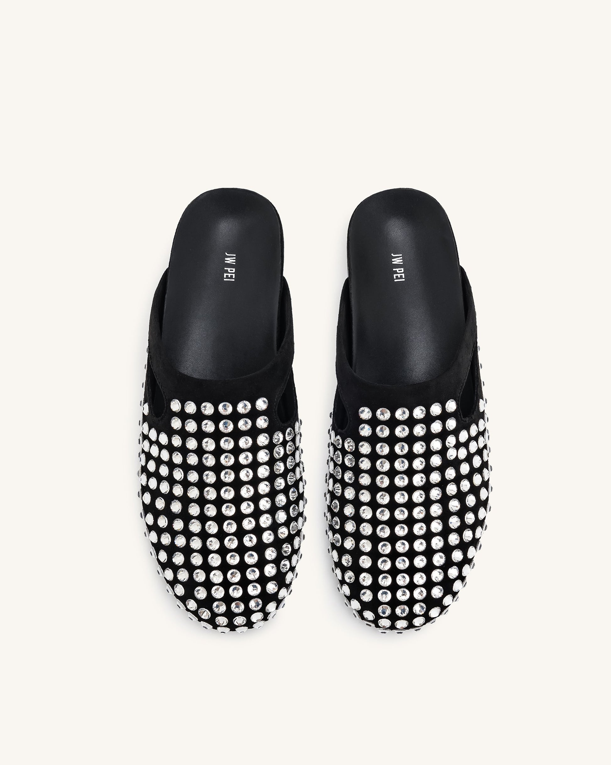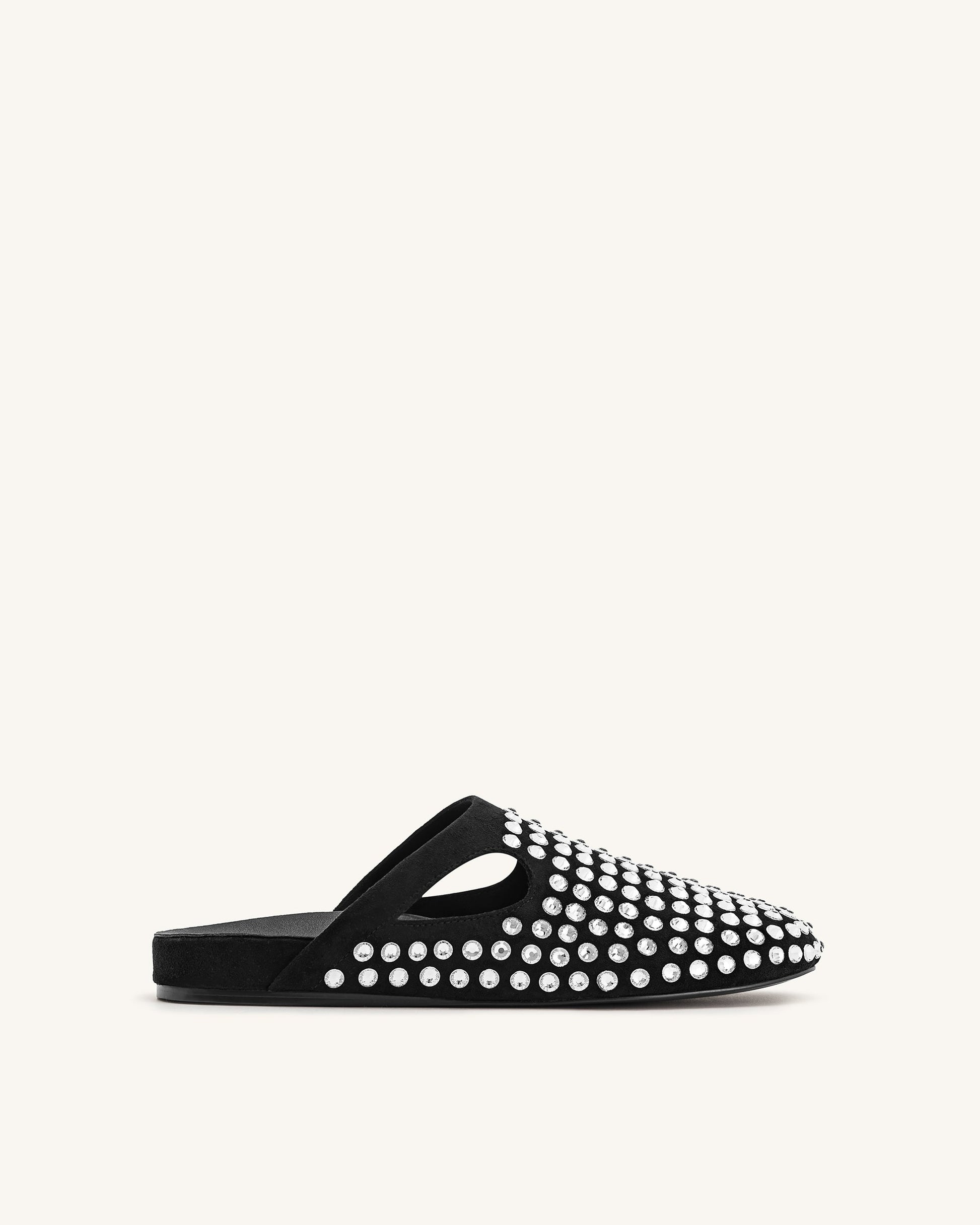 Athena Artificial Crystal Flat Mules - Black