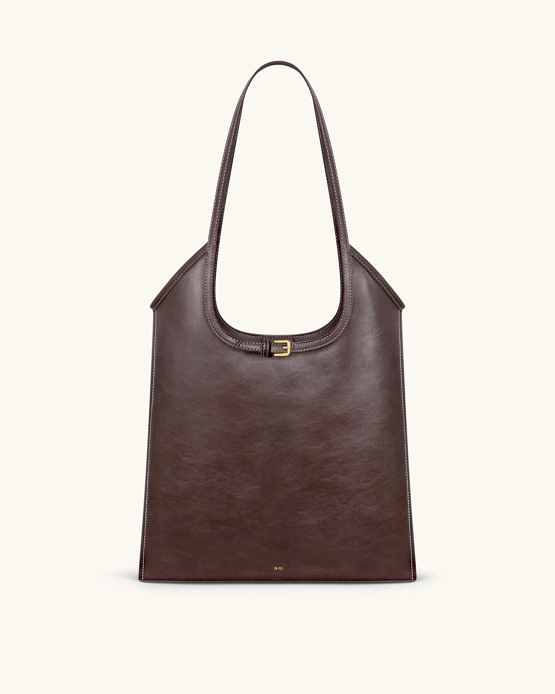 Brooke Belted Embellished Shoulder Tote Bag - Dark Brown