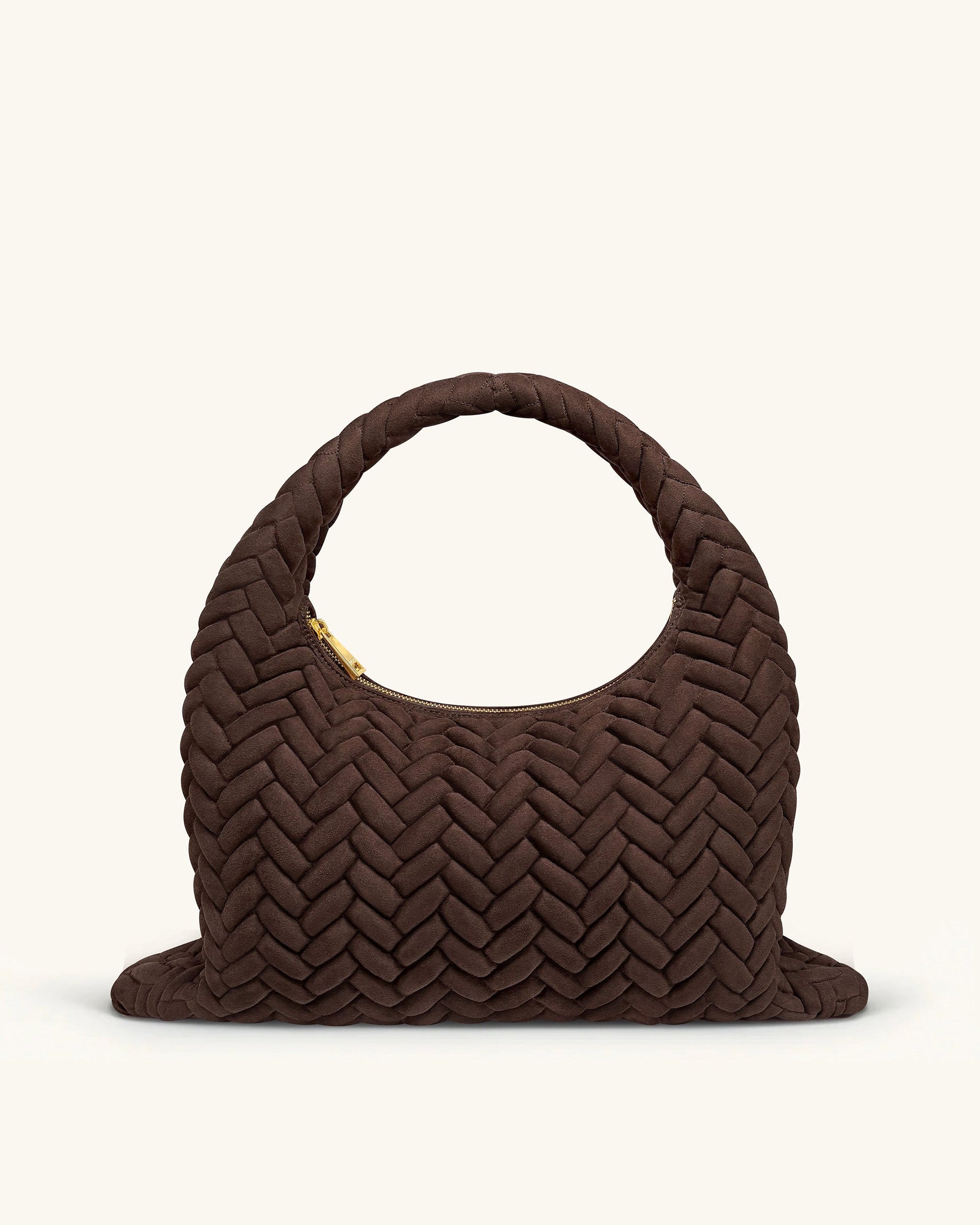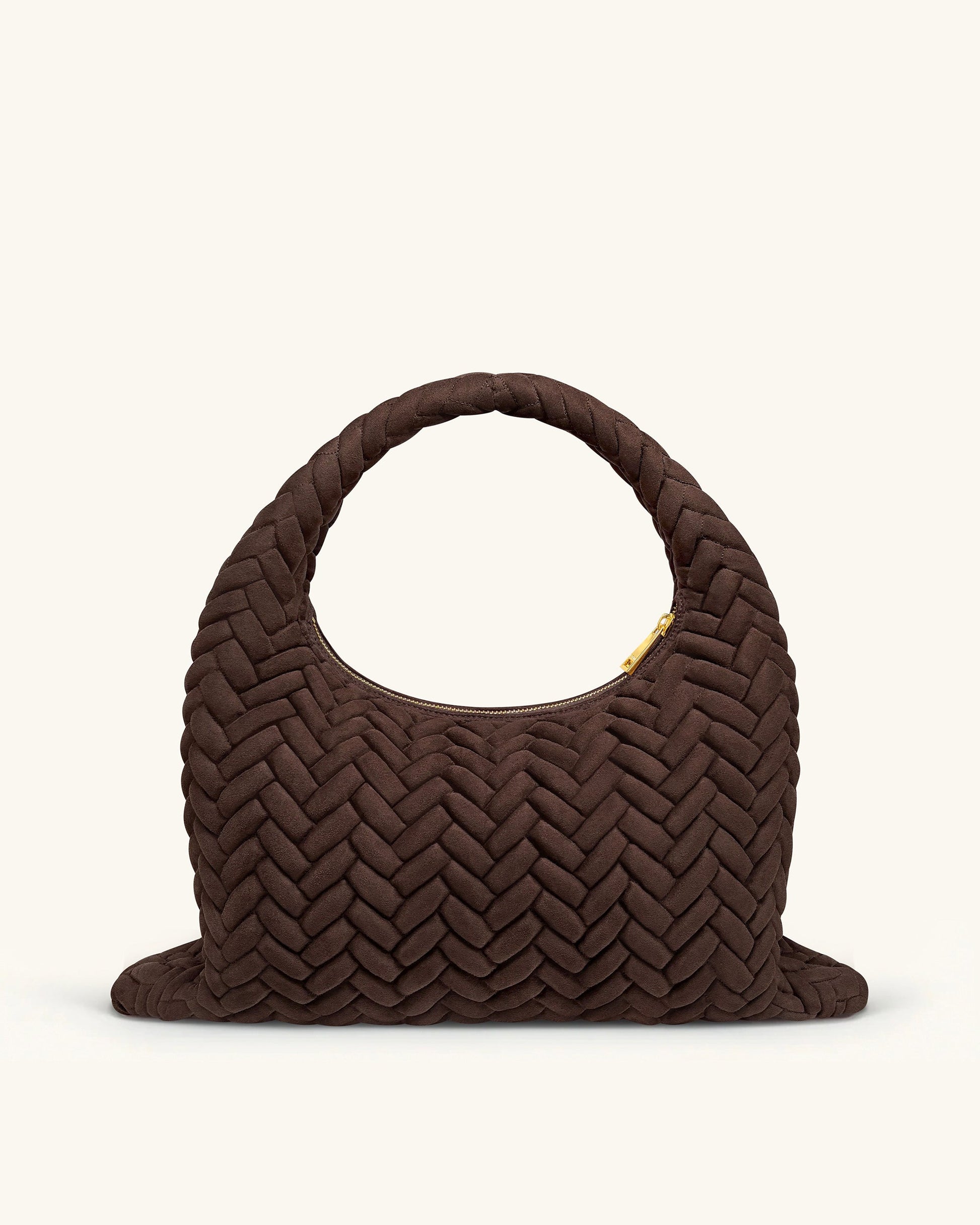 Cora Large Faux Suede Quilting Hobo Shoulder Bag - Dark Brown
