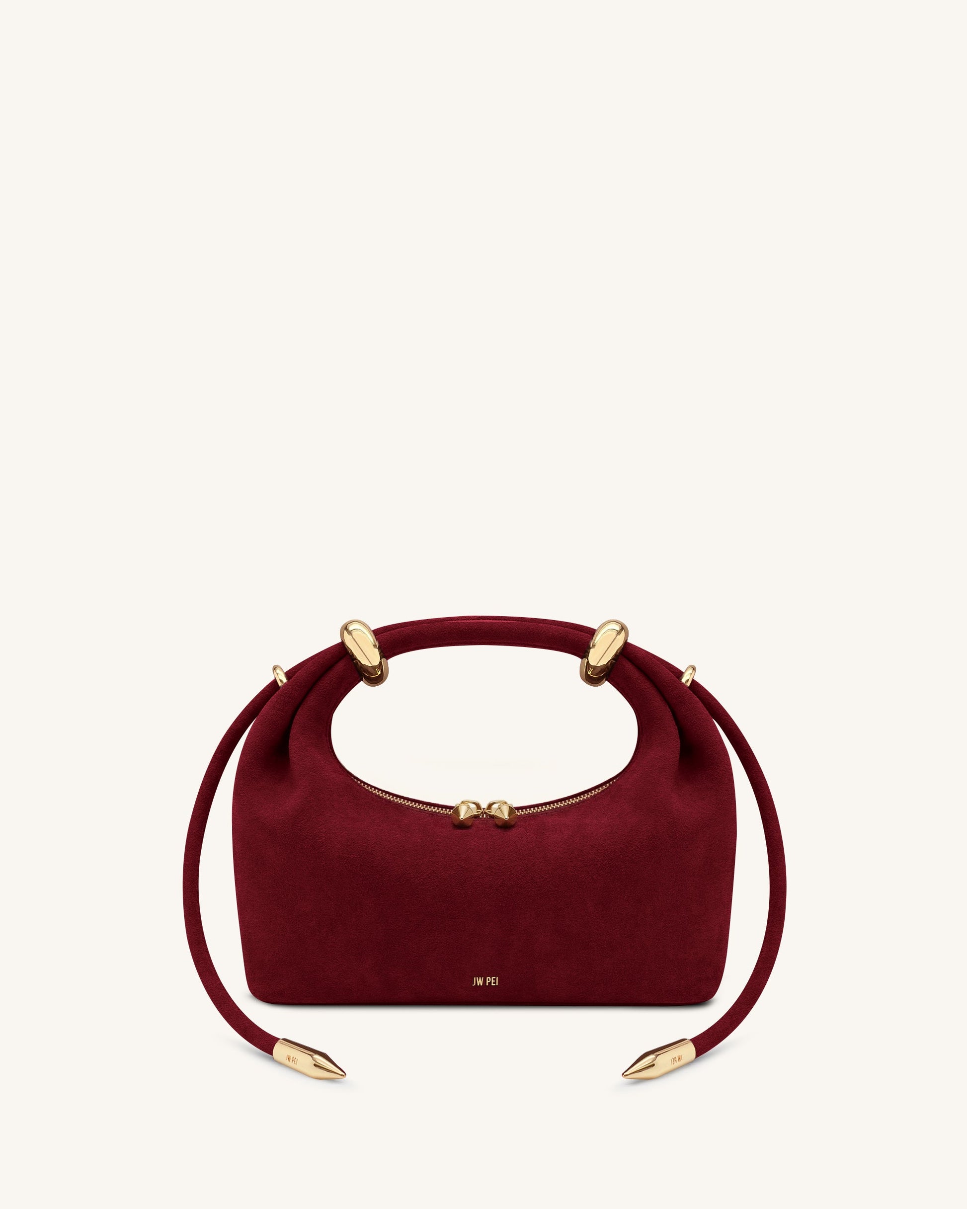 Ellie Faux Suede Metal Ring Embellished Top Handle Bag - Burgundy