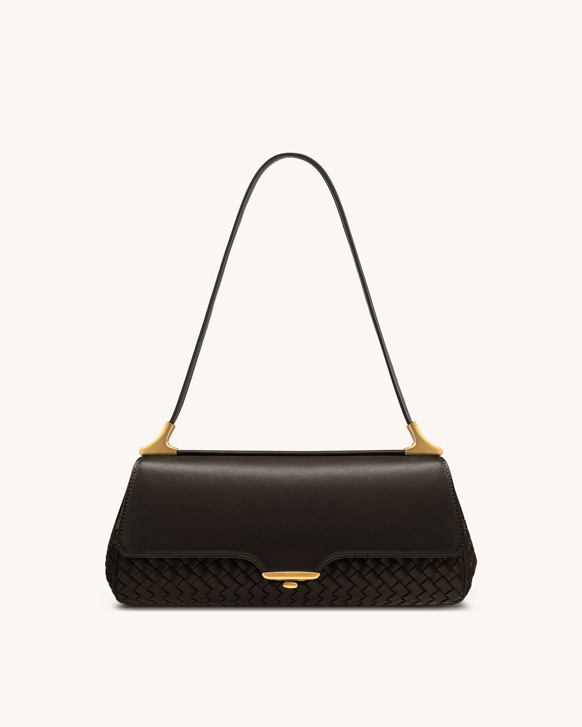 Refined and structured, this handbag features a woven texture. Accented with golden hardware for a touch of elegance. Ideal for everyday essentials.