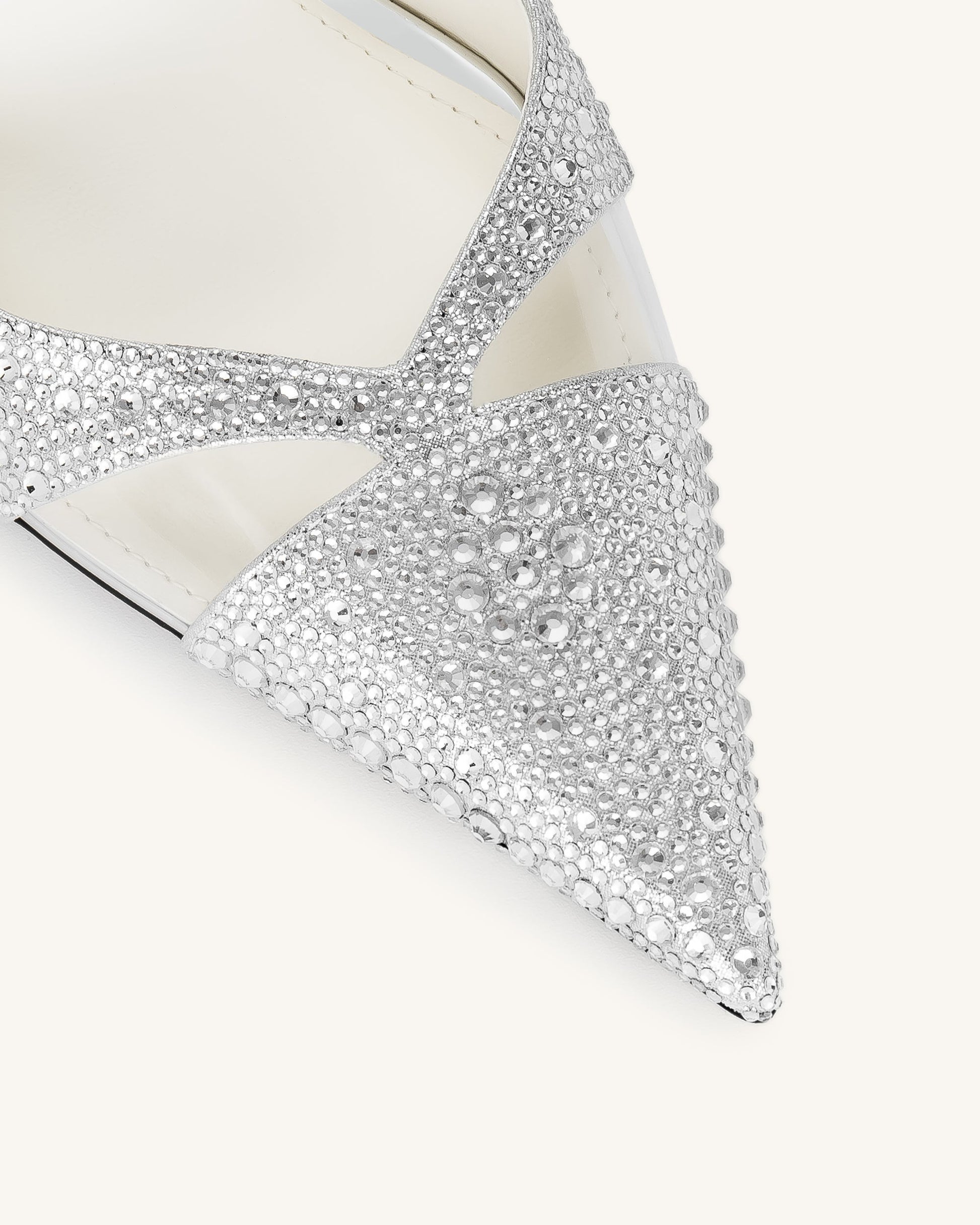 We typically advise customers to size up from their regular shoe size when purchasing our HELENA PIERCED MULES.