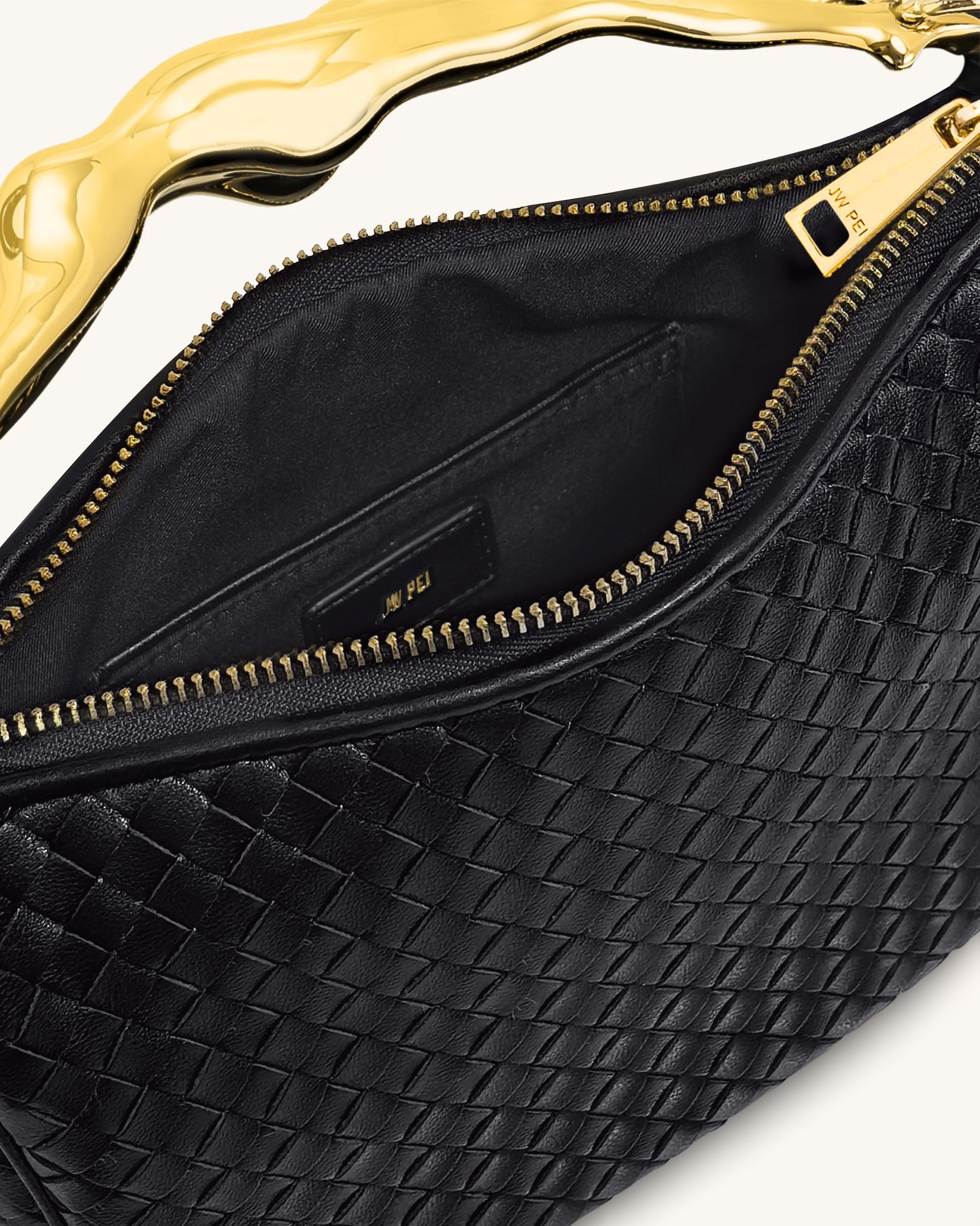 Jenny Woven Human-shaped Handle Handbag - Black