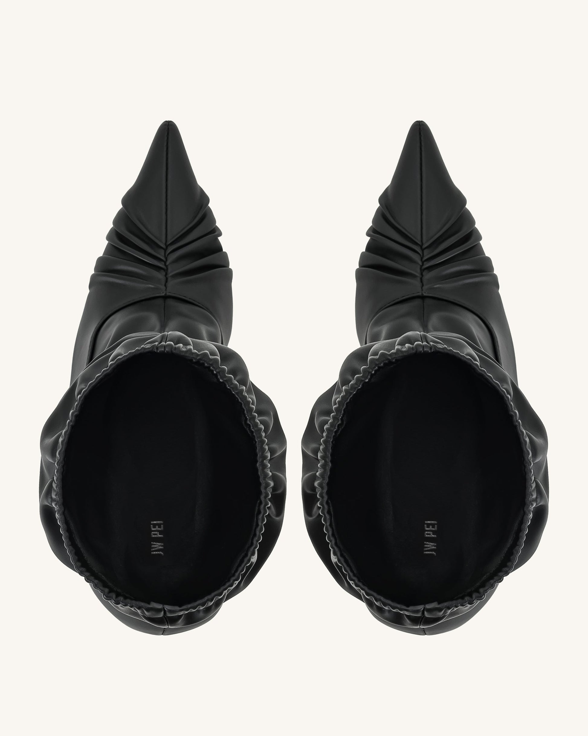 Joanne Paneled Detailing leather Ankle Boots - Black
