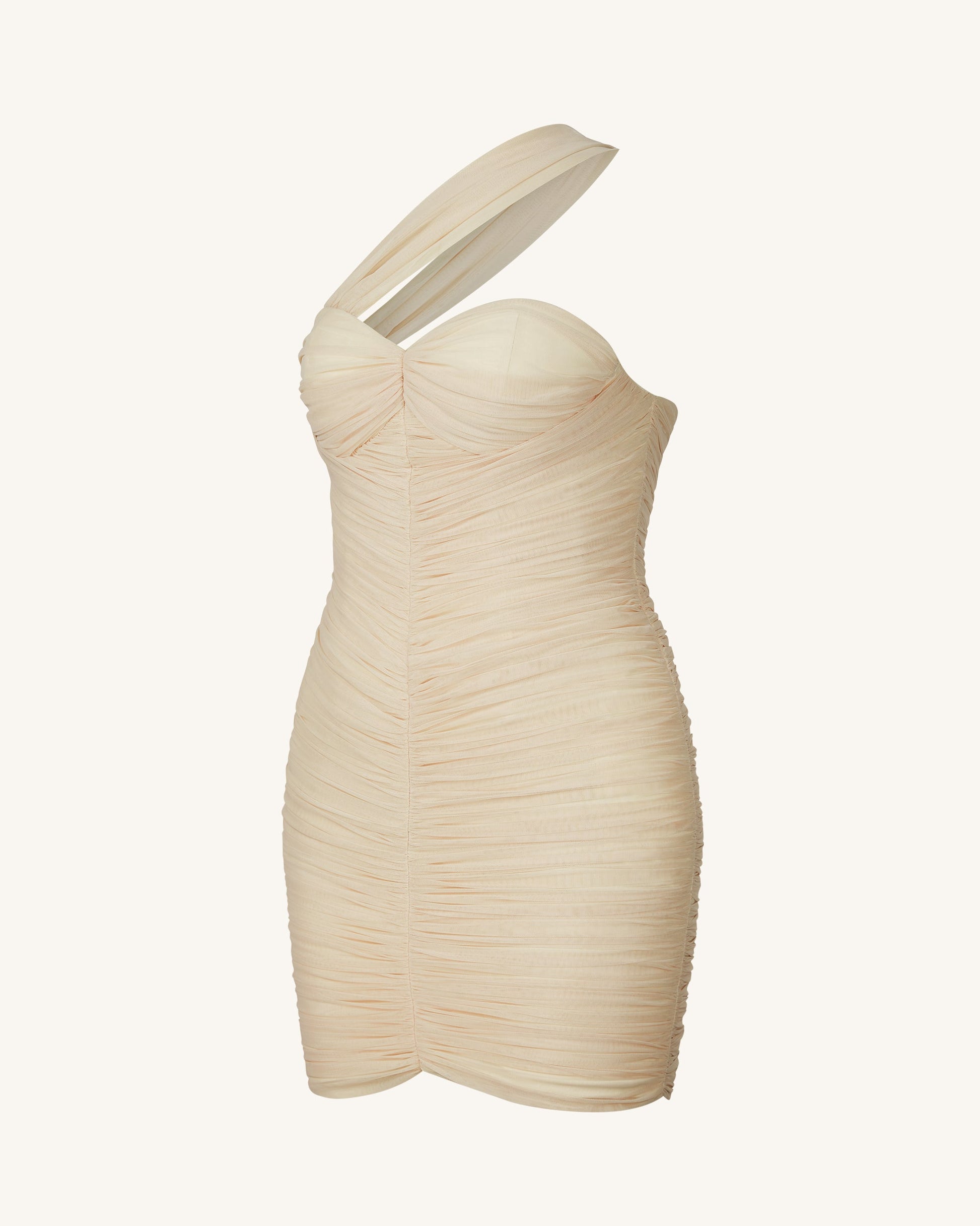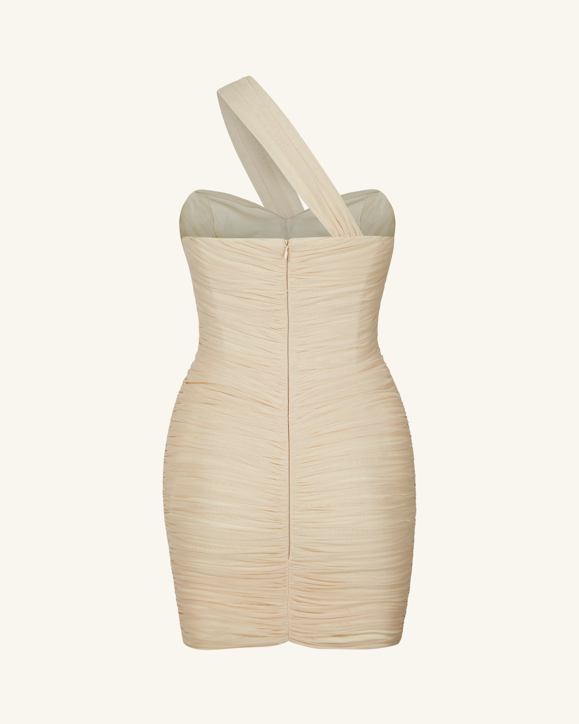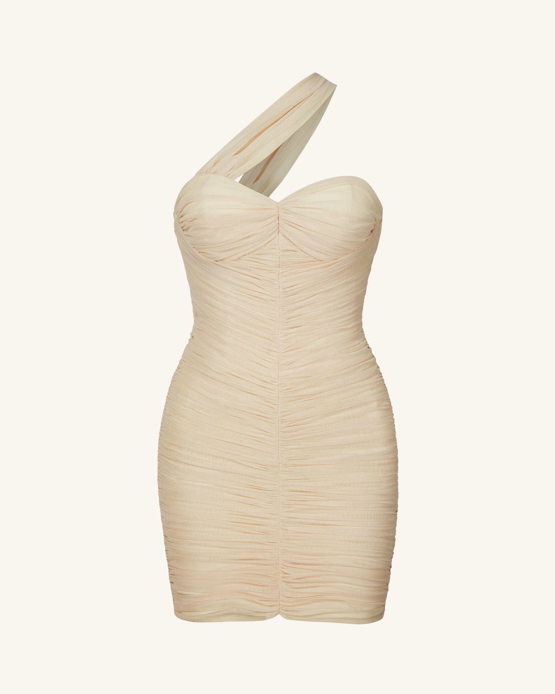 Josephine One-Shoulder Ruched Mini Dress - Nude