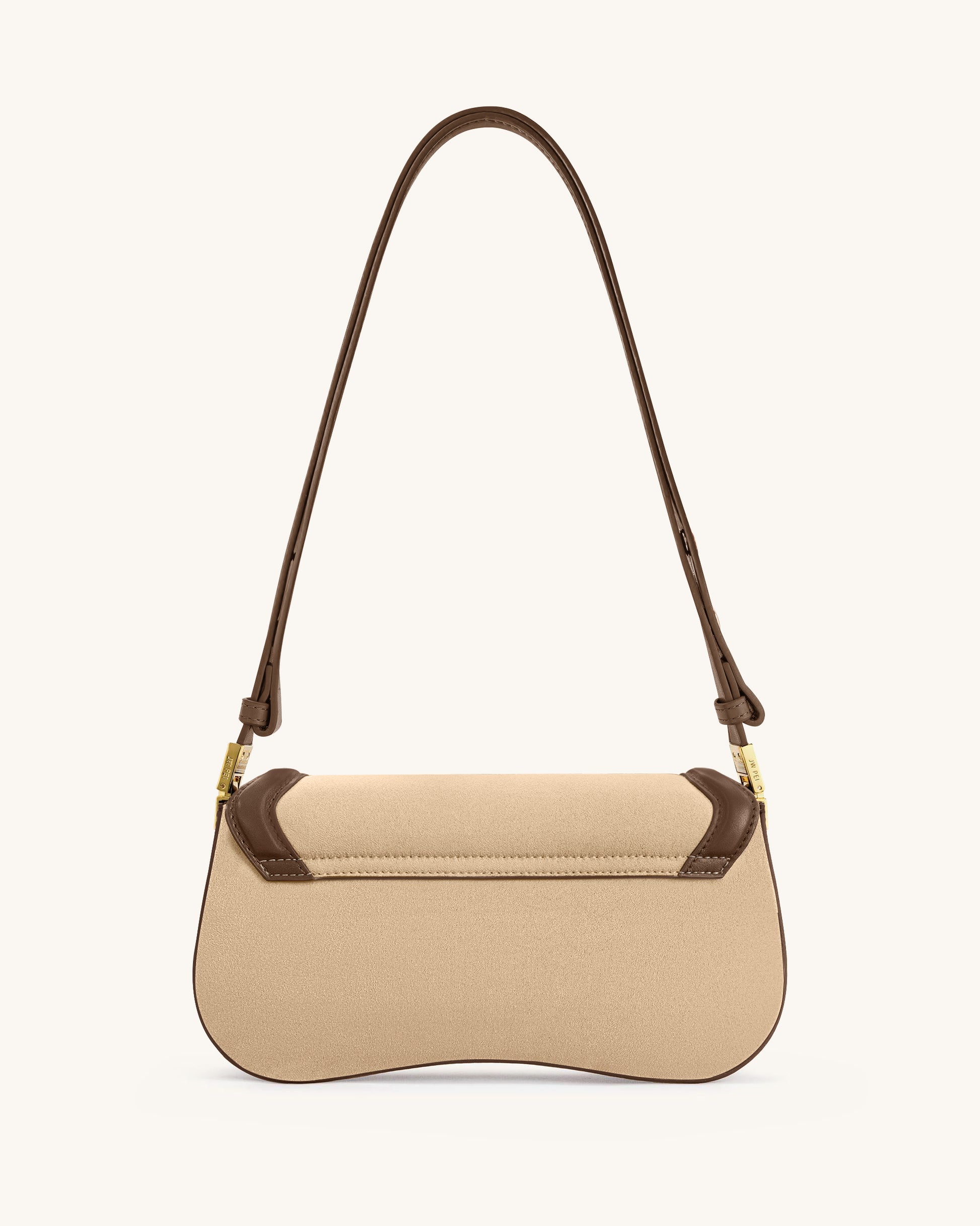 Joy Faux Suede Shoulder Bag - Khaki Brown