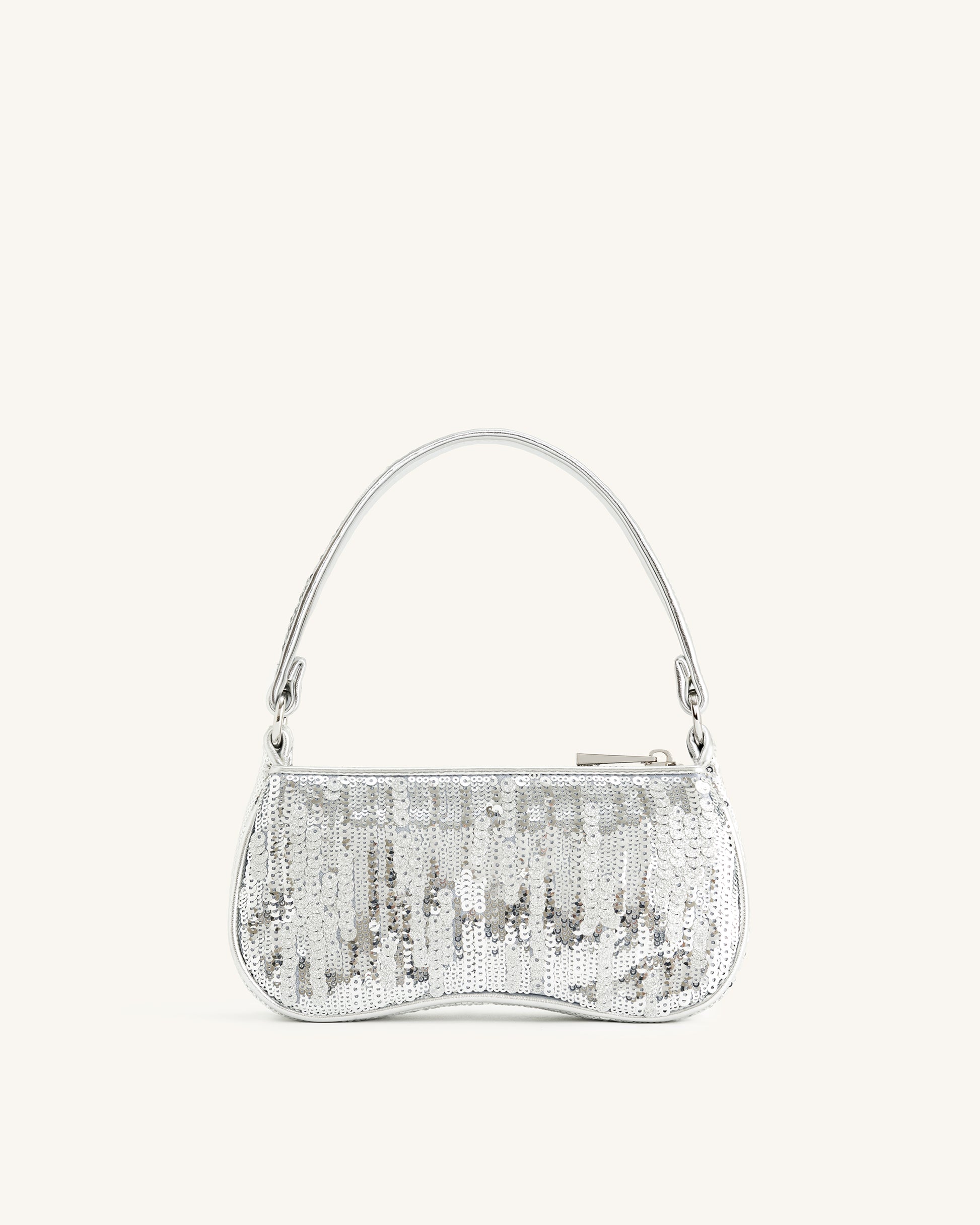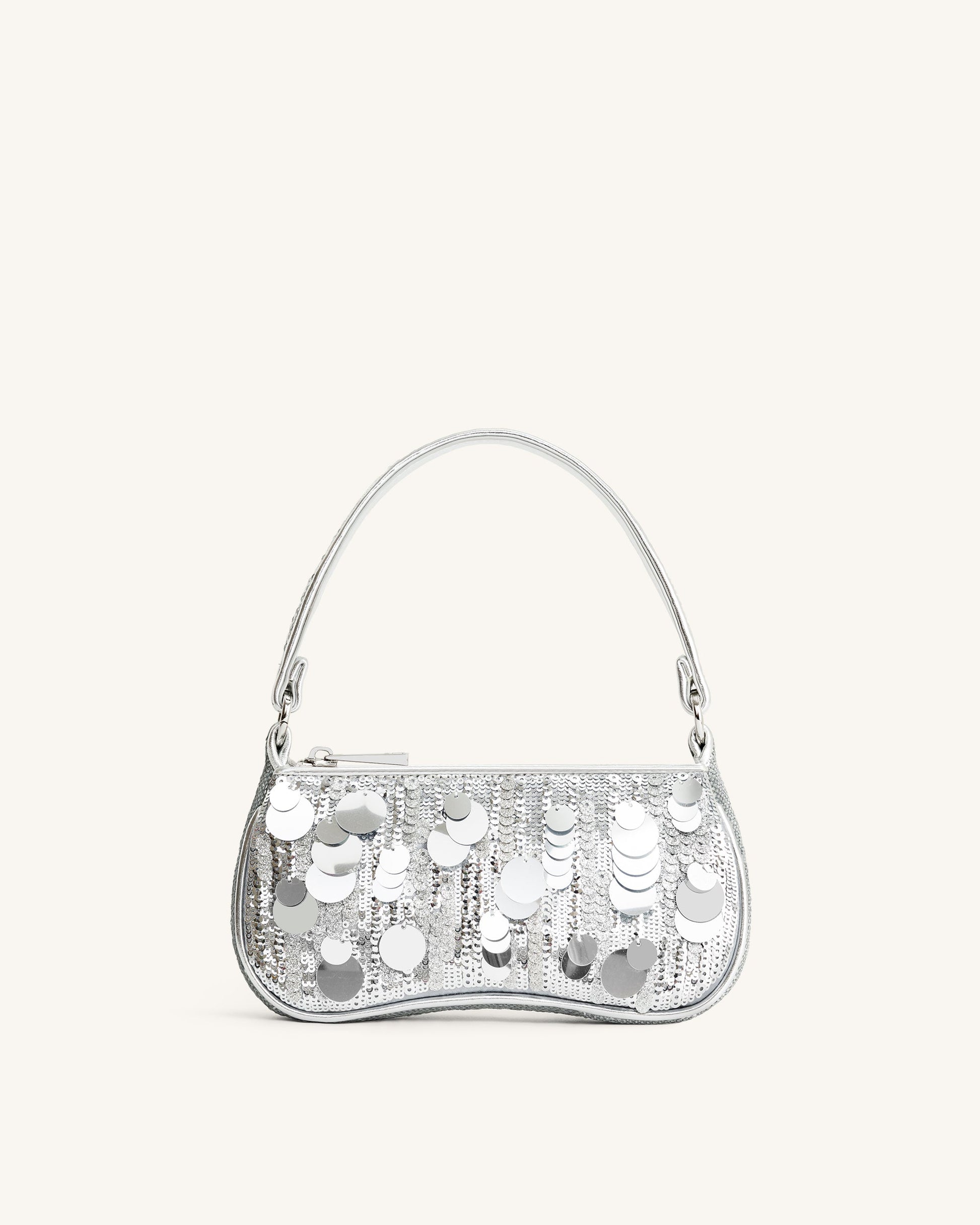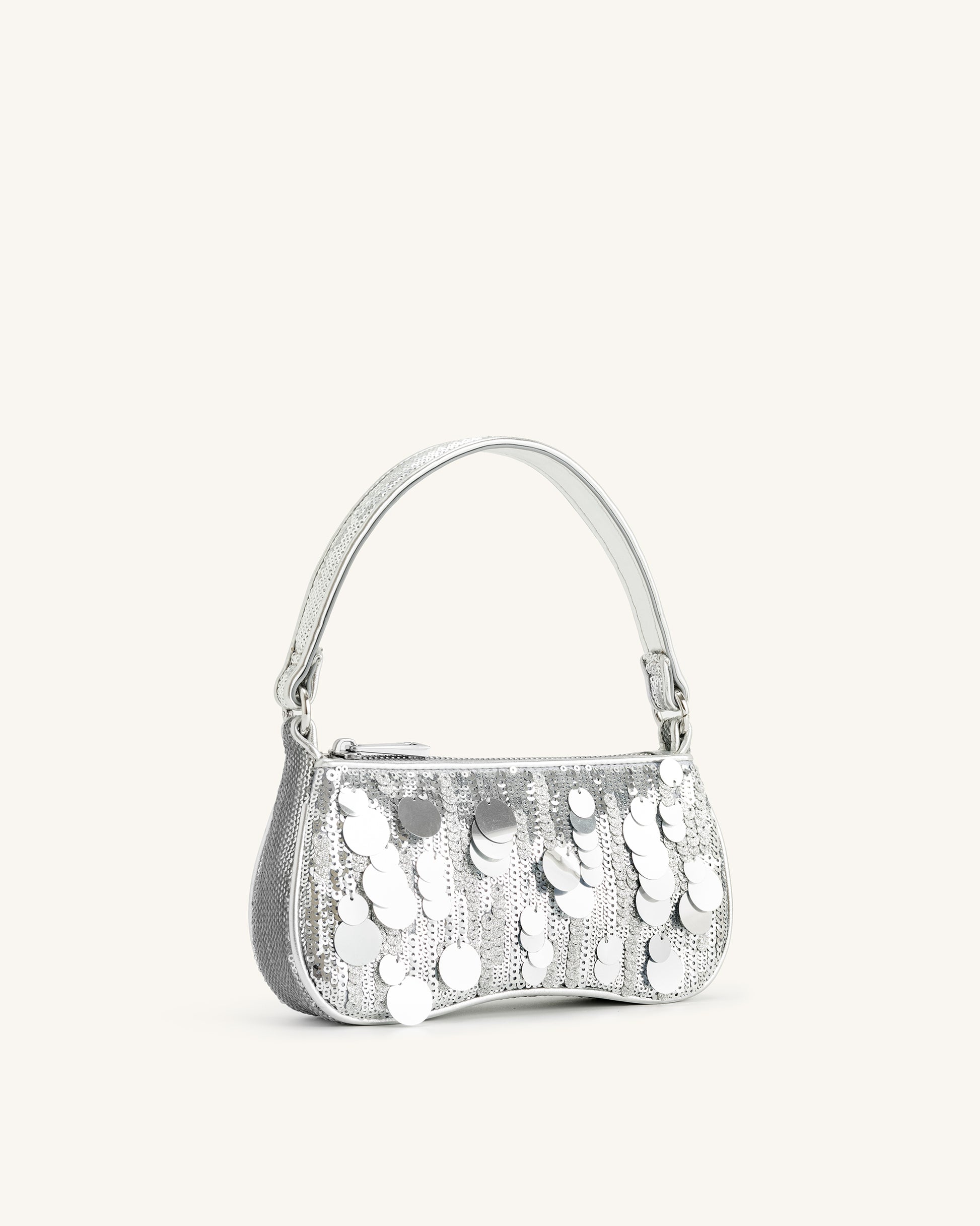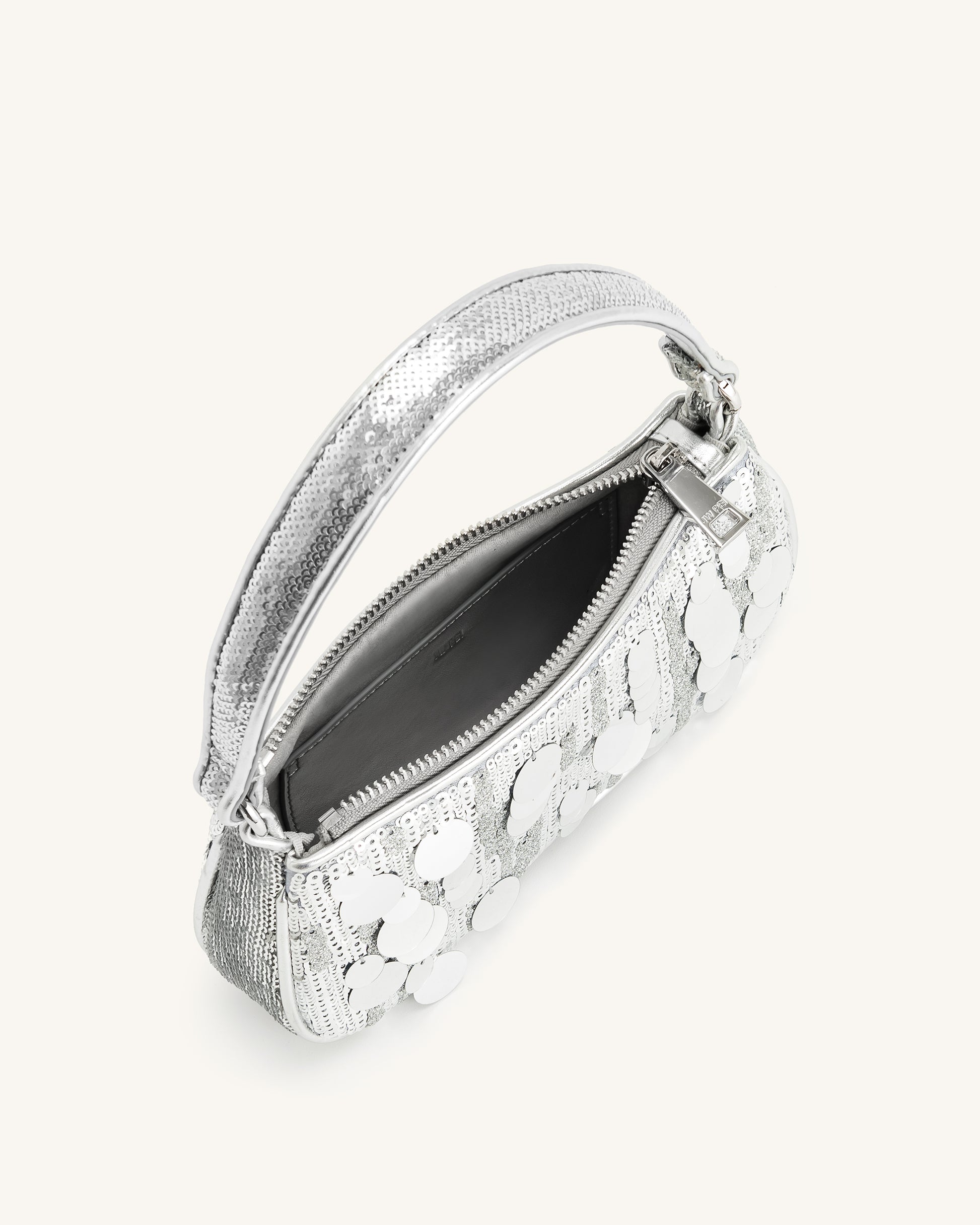 Eva Metallic Sequin Mini Shoulder Bag - Silver