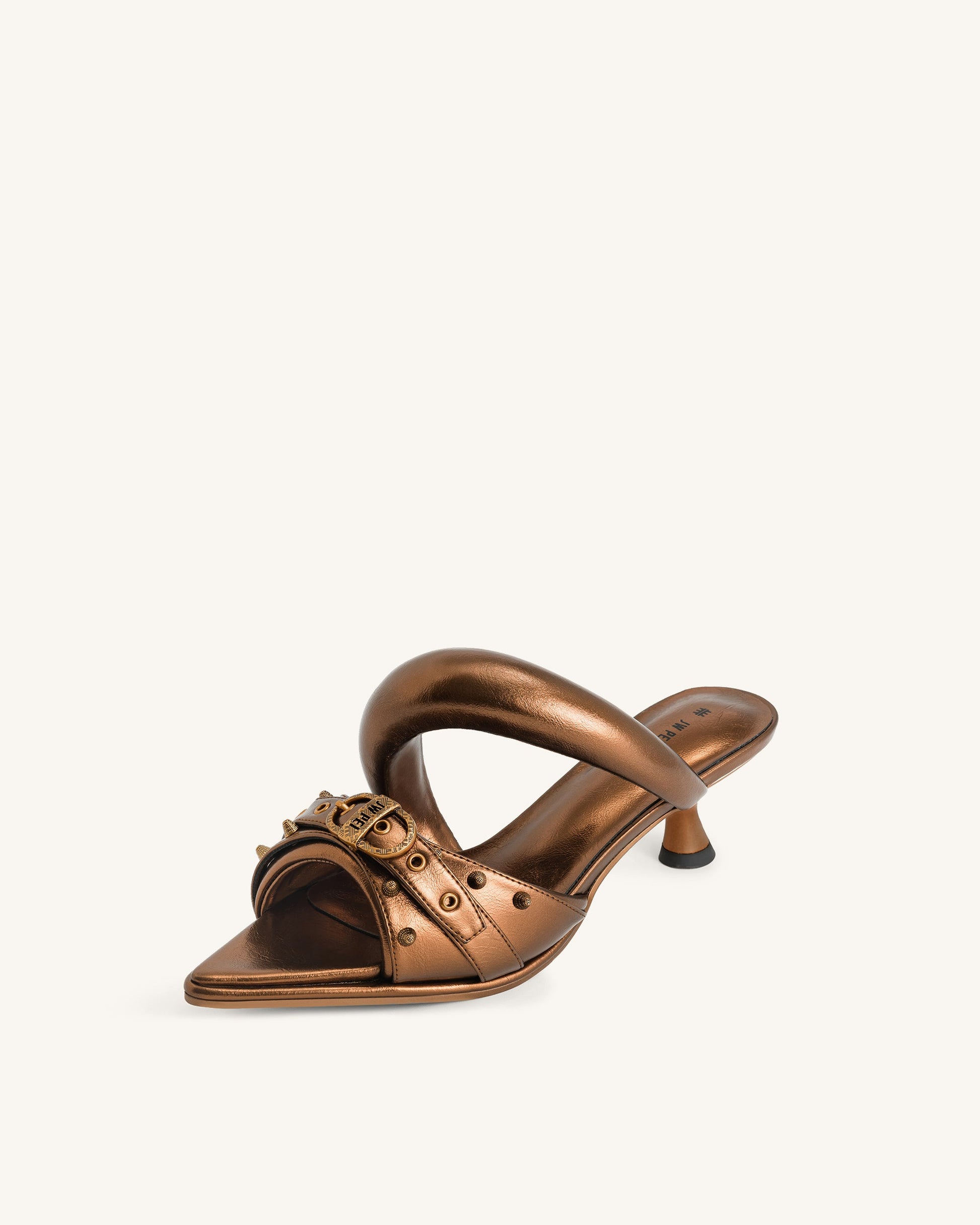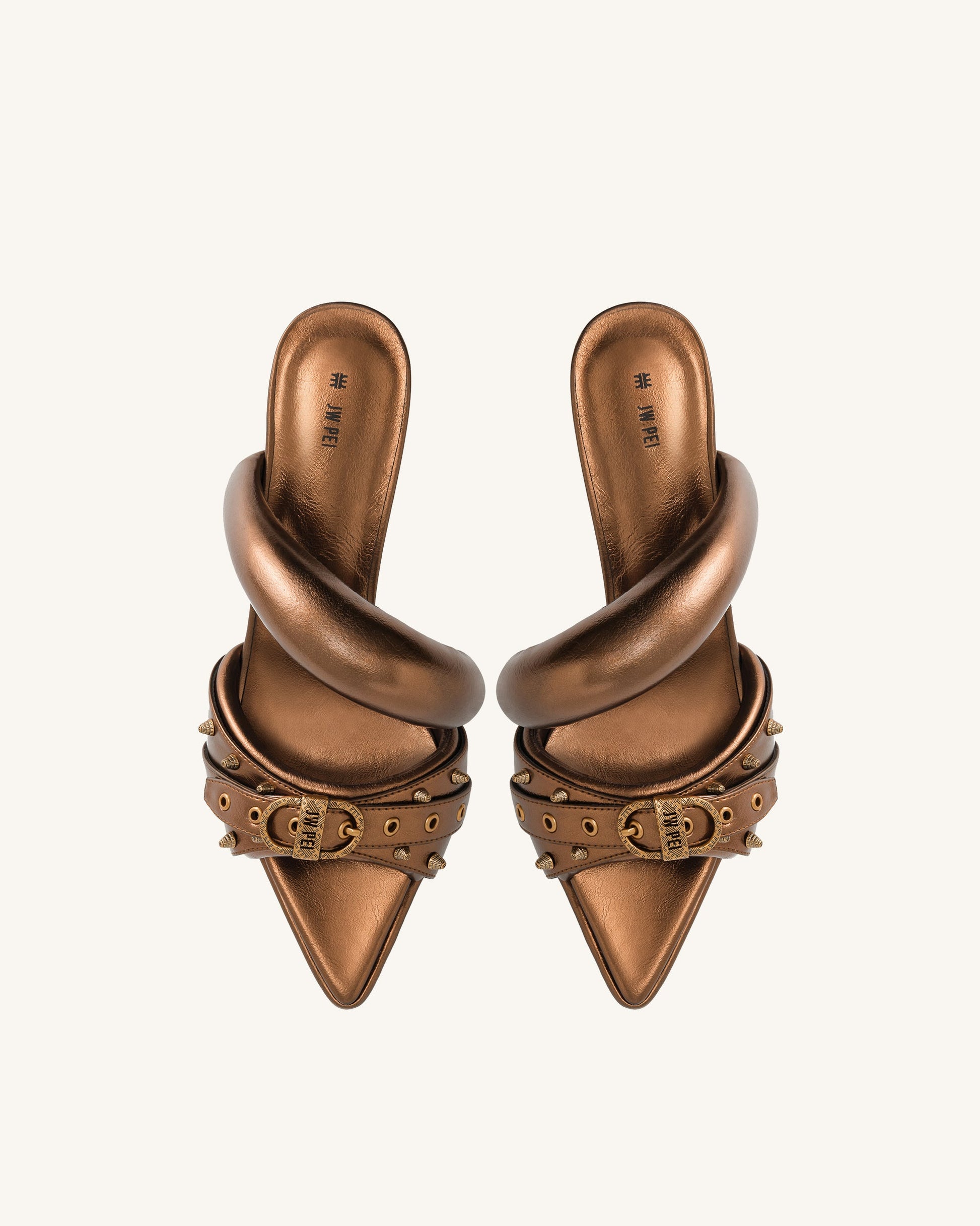 We typically advise customers to size up from their regular shoe size when purchasing our HELENA PIERCED MULES.