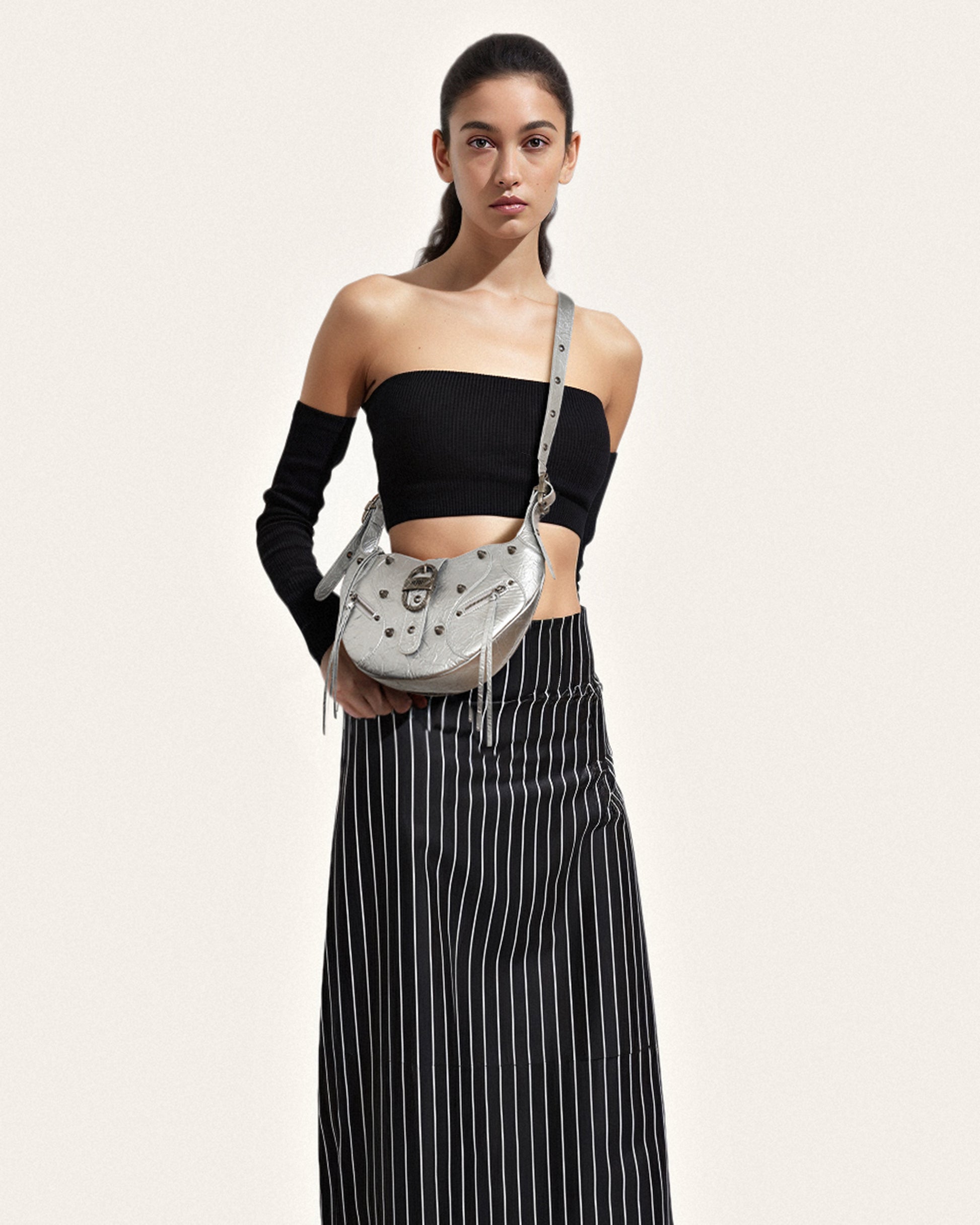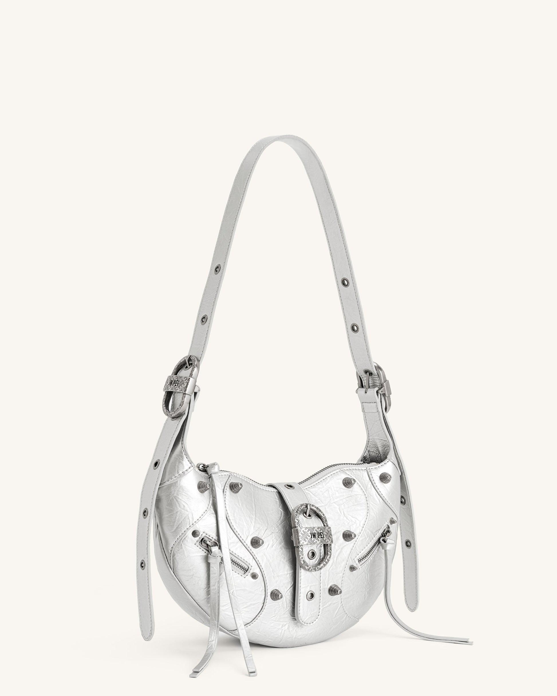 Tessa Metallic Pleating Shoulder Bag - Silver