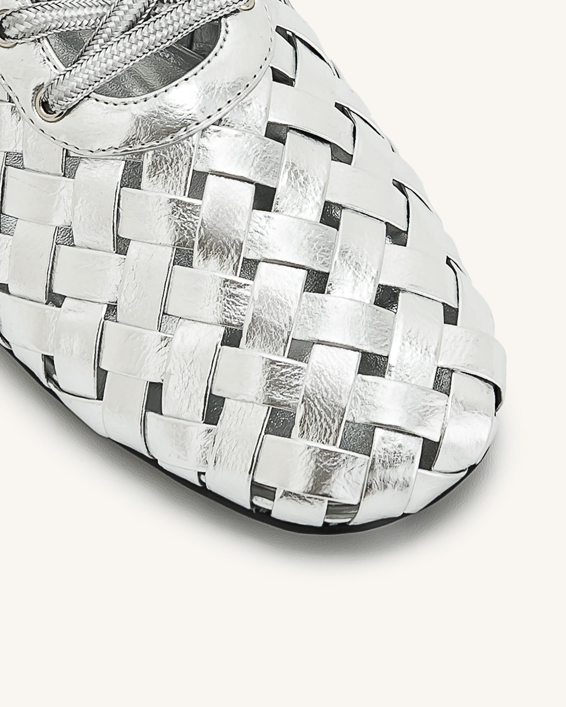Kayla Weave Strap Flat Shoes - Silver