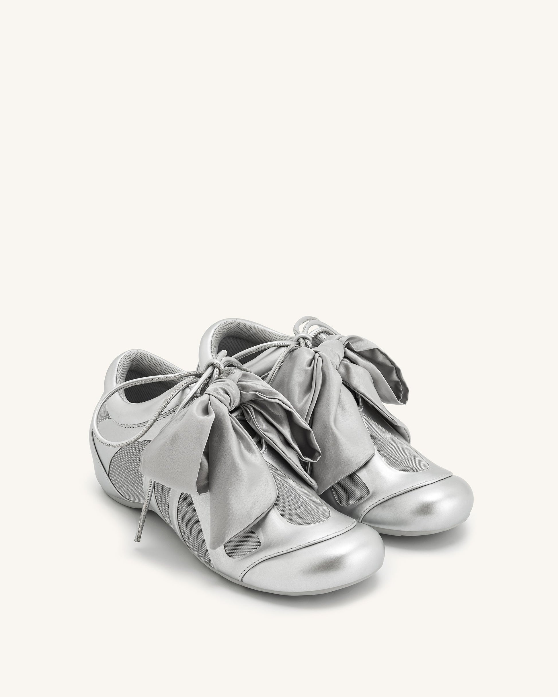 Rosie Metallic Bow Tie Low Top Sneakers - Silver