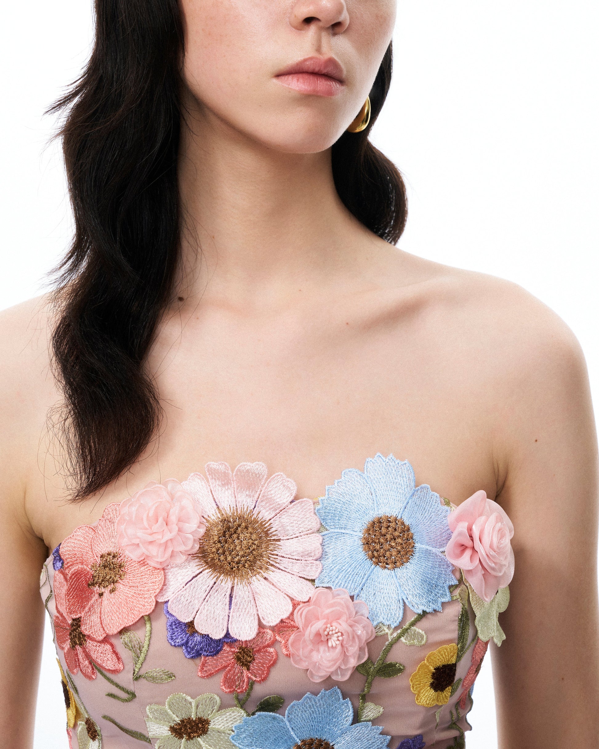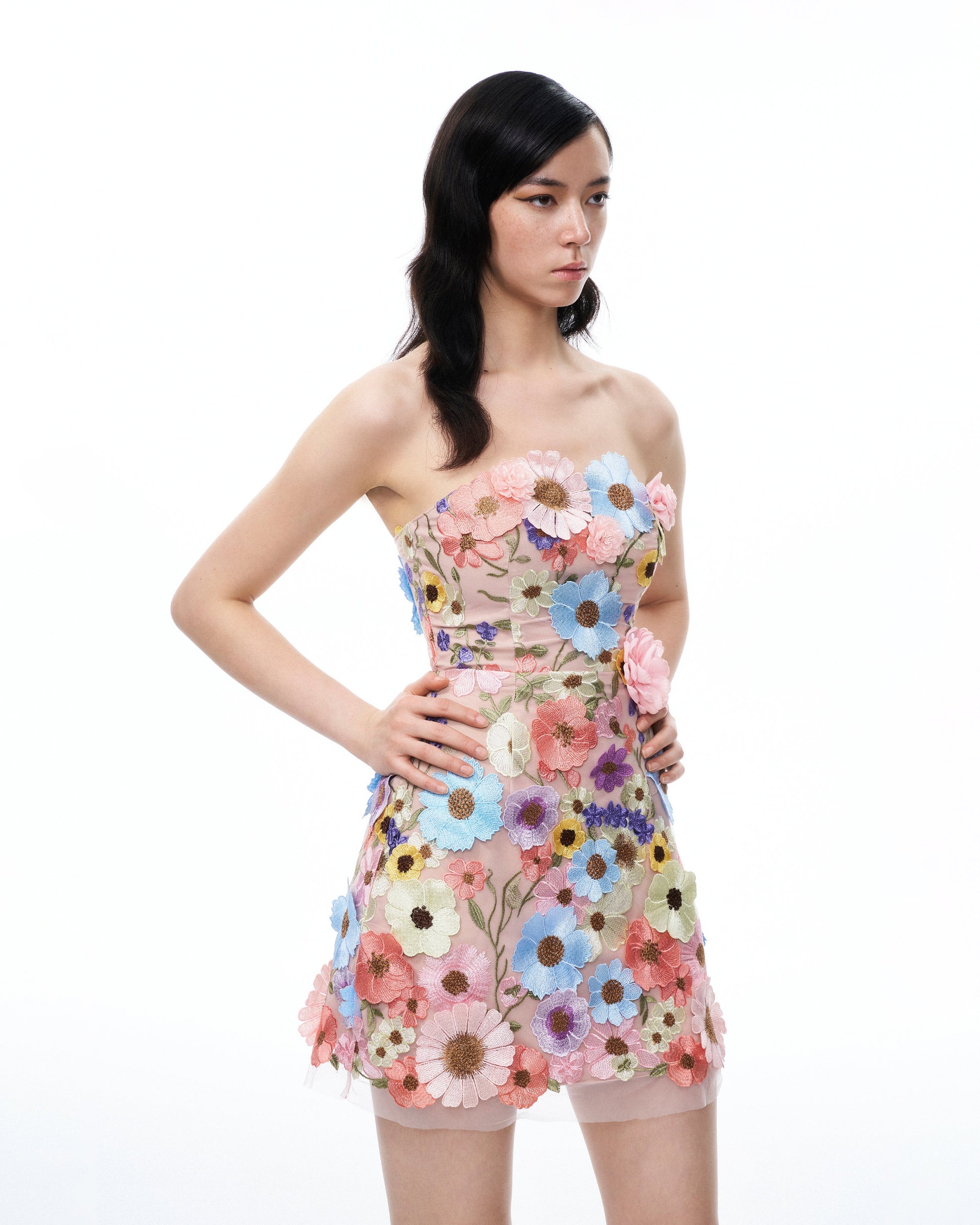 Odalys Floral Embroidered Mini Dress - Pastel Multi