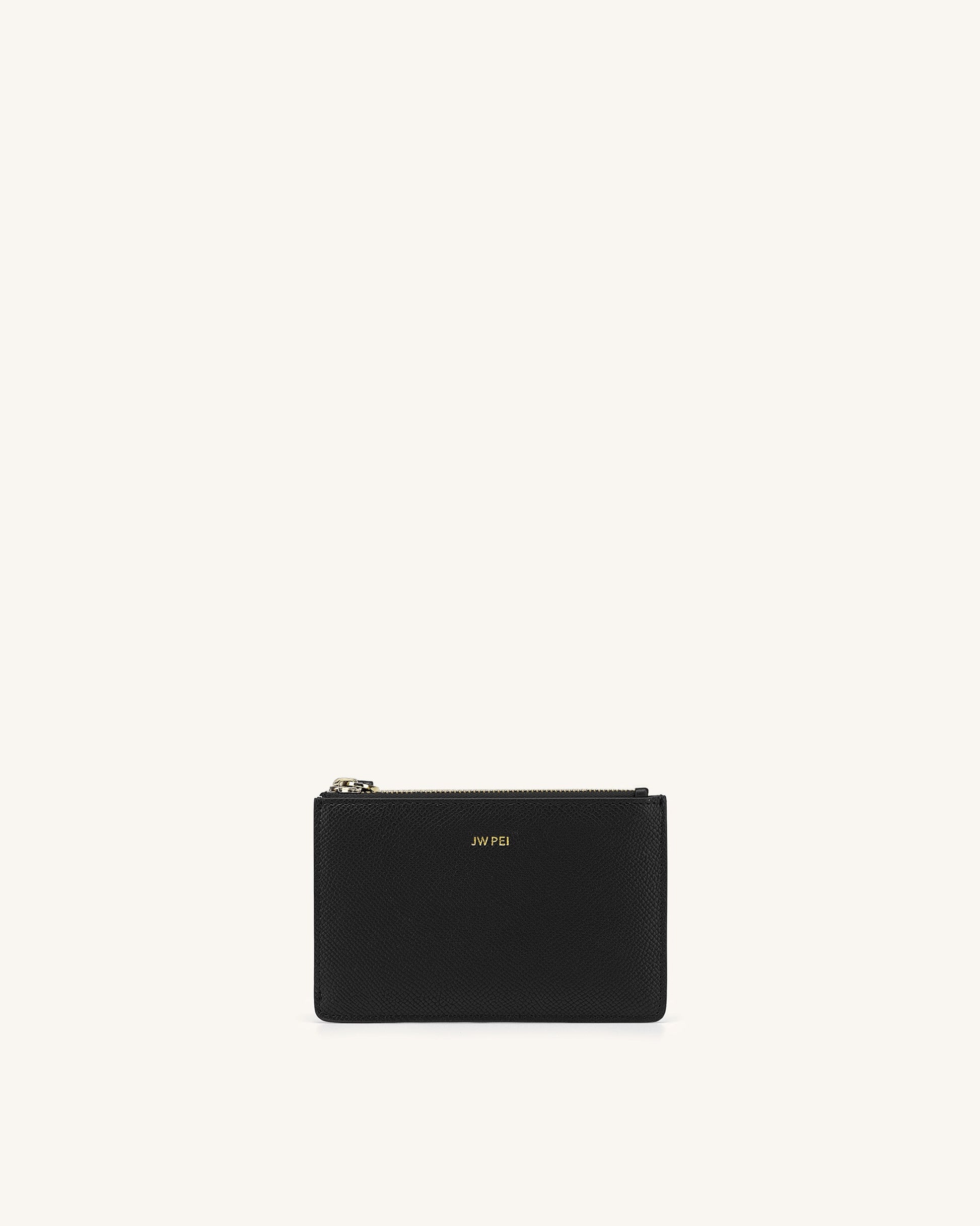 Quinn Zipped Card Holder- Black Grained Vegan Leather