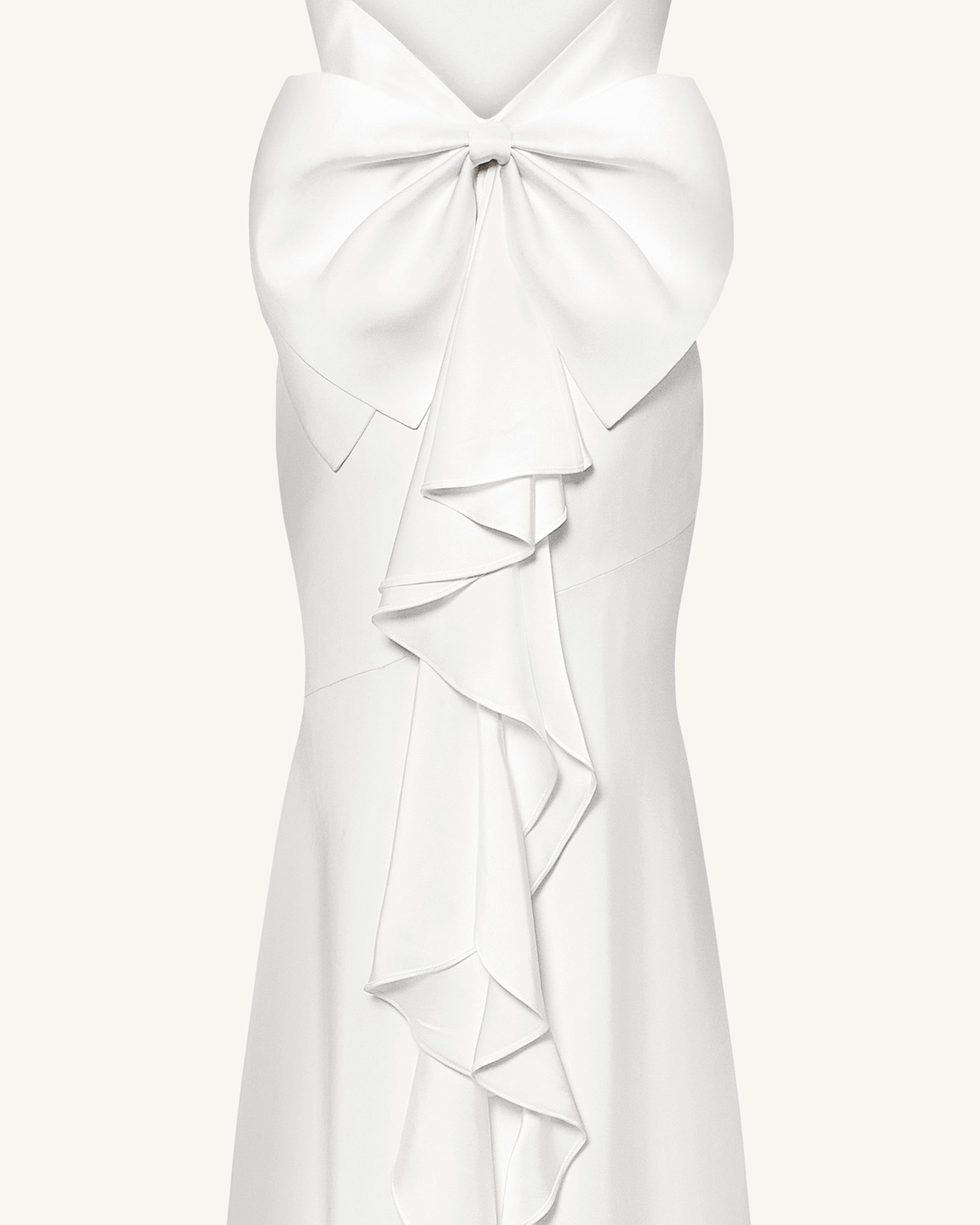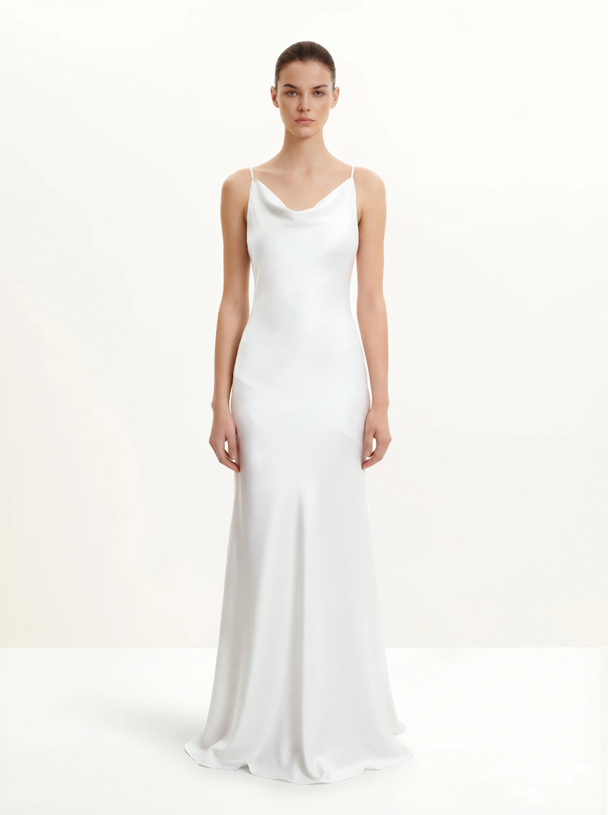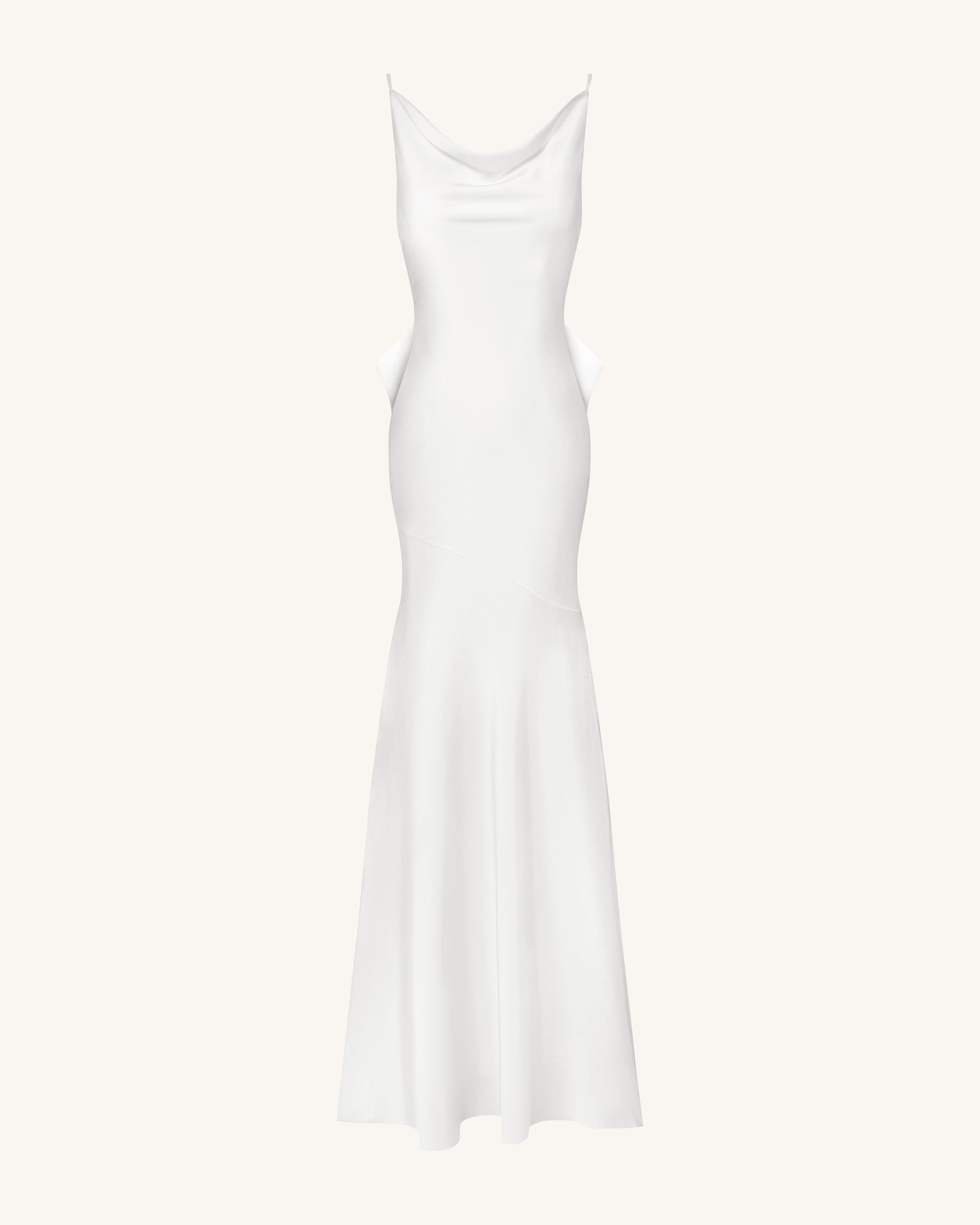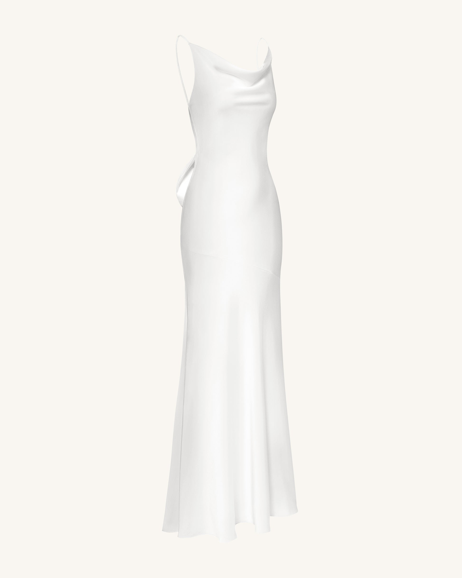 Satin Cowl-Neck Bow-Back Maxi Dress - White