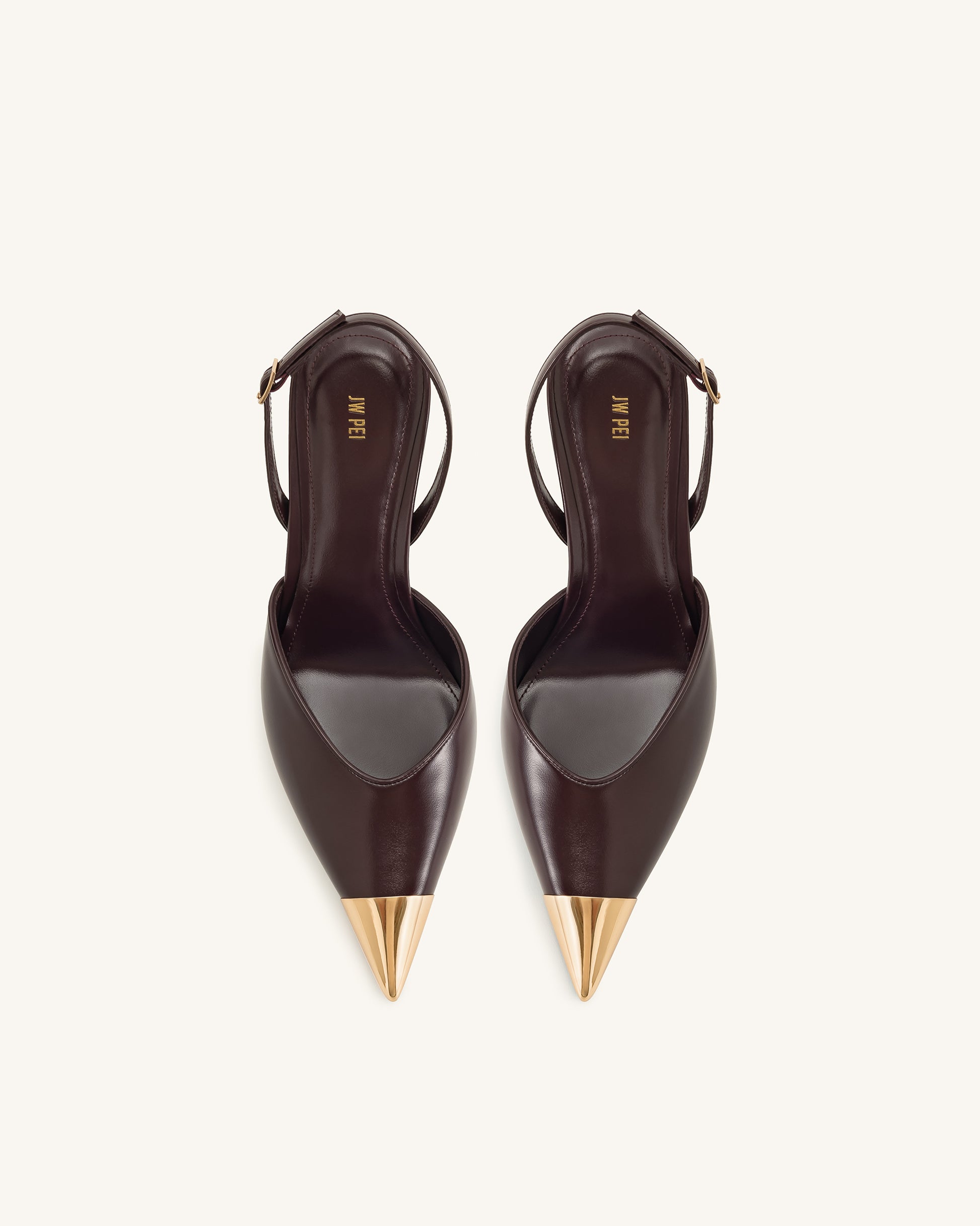 Savannah Gold Tipped Slingback Pumps - Burgundy