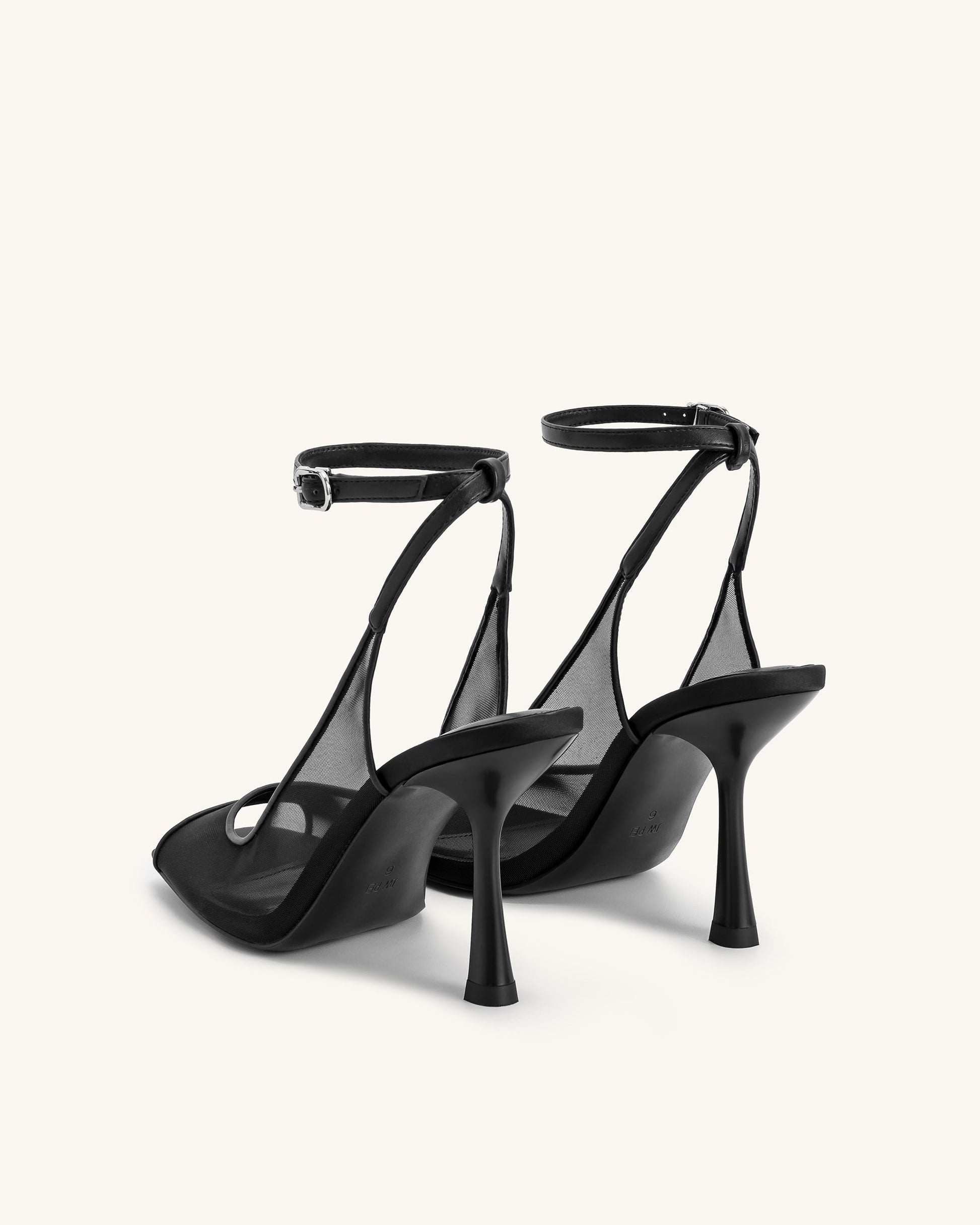 Serenity Open Toe Mesh Slingback Sandals - Black