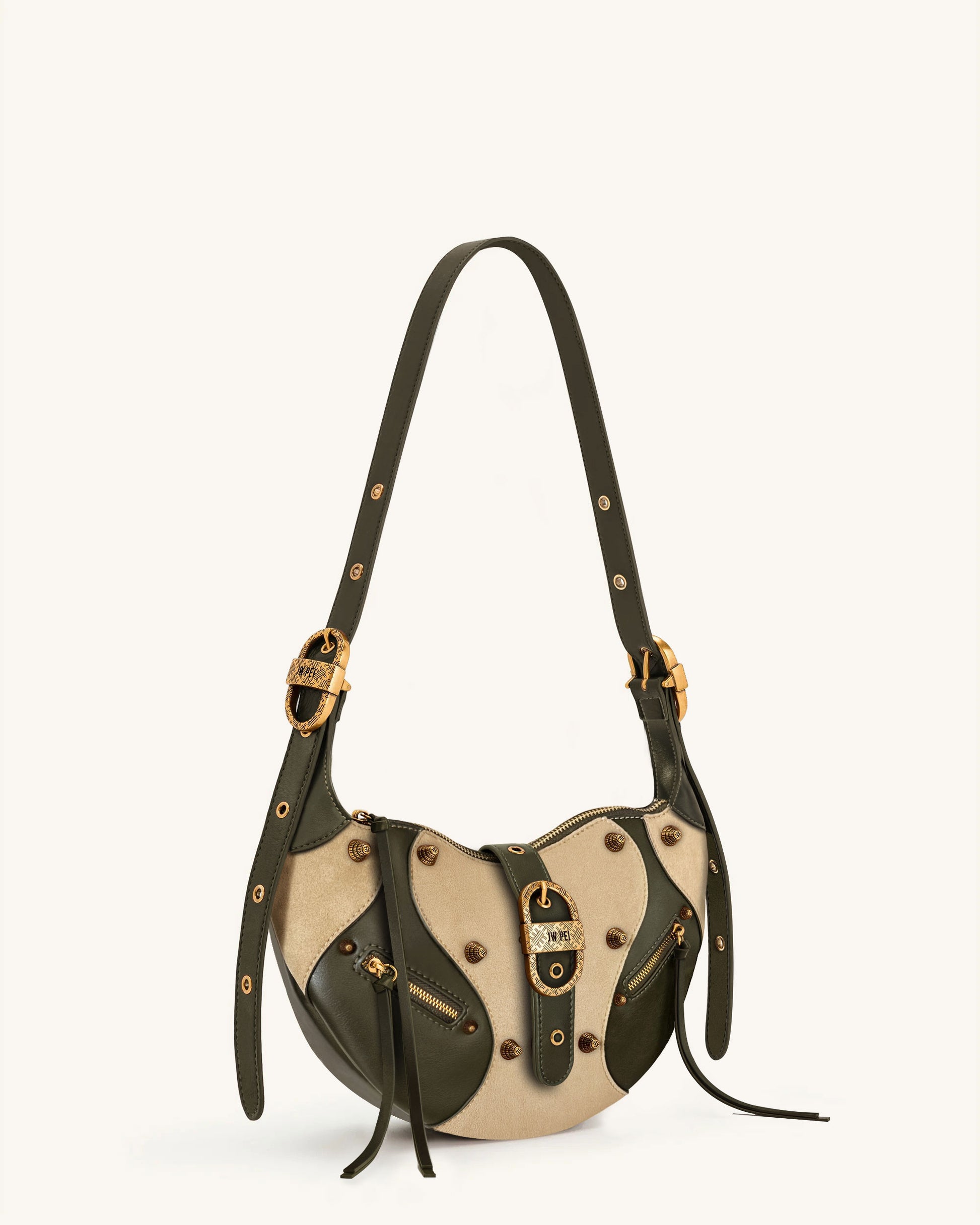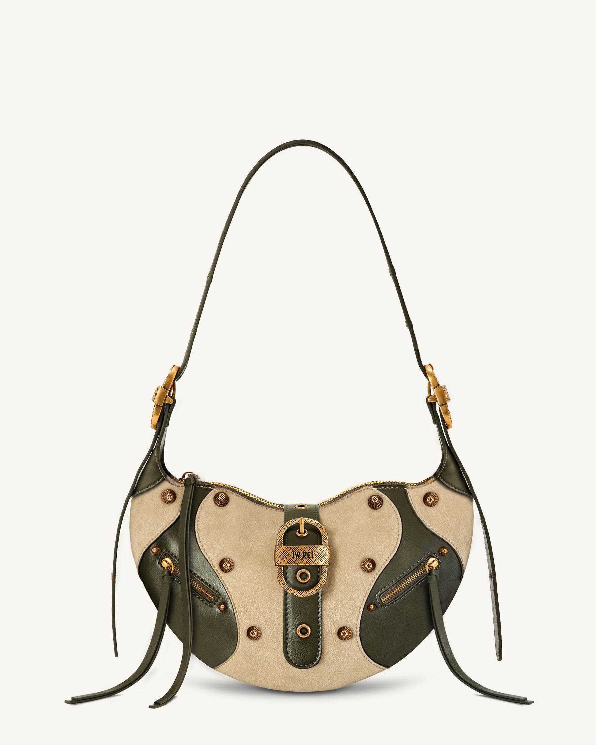Tessa Faux Suede Studded Shoulder Bag - Khaki Green