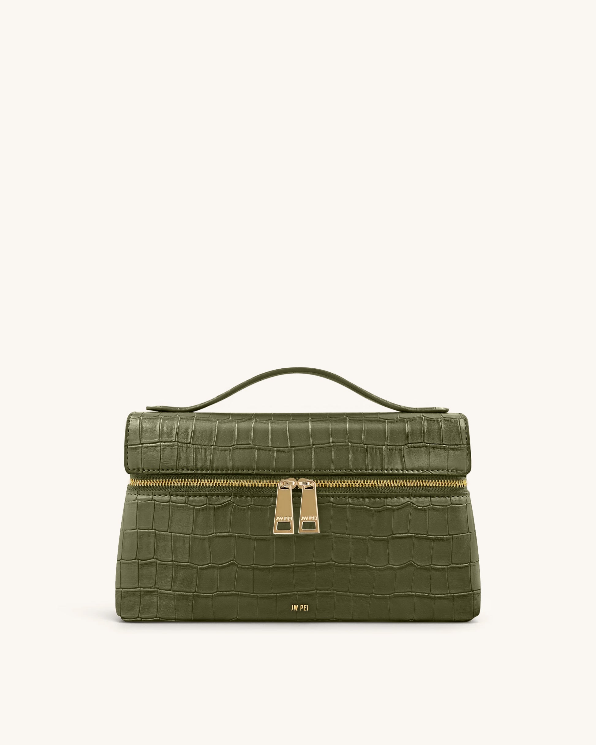 Thea Croc-Embossed Top Handle Bag - Olive Green