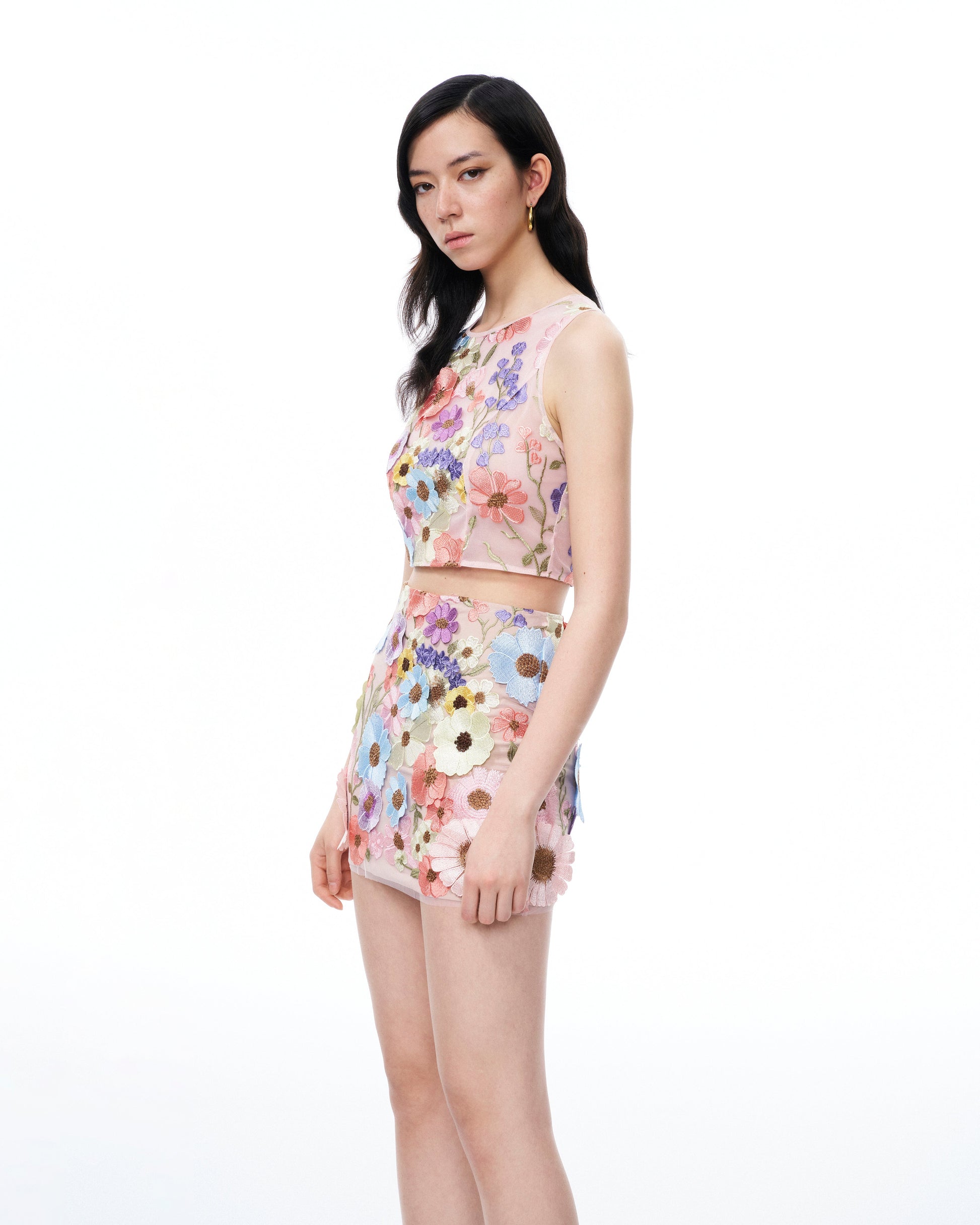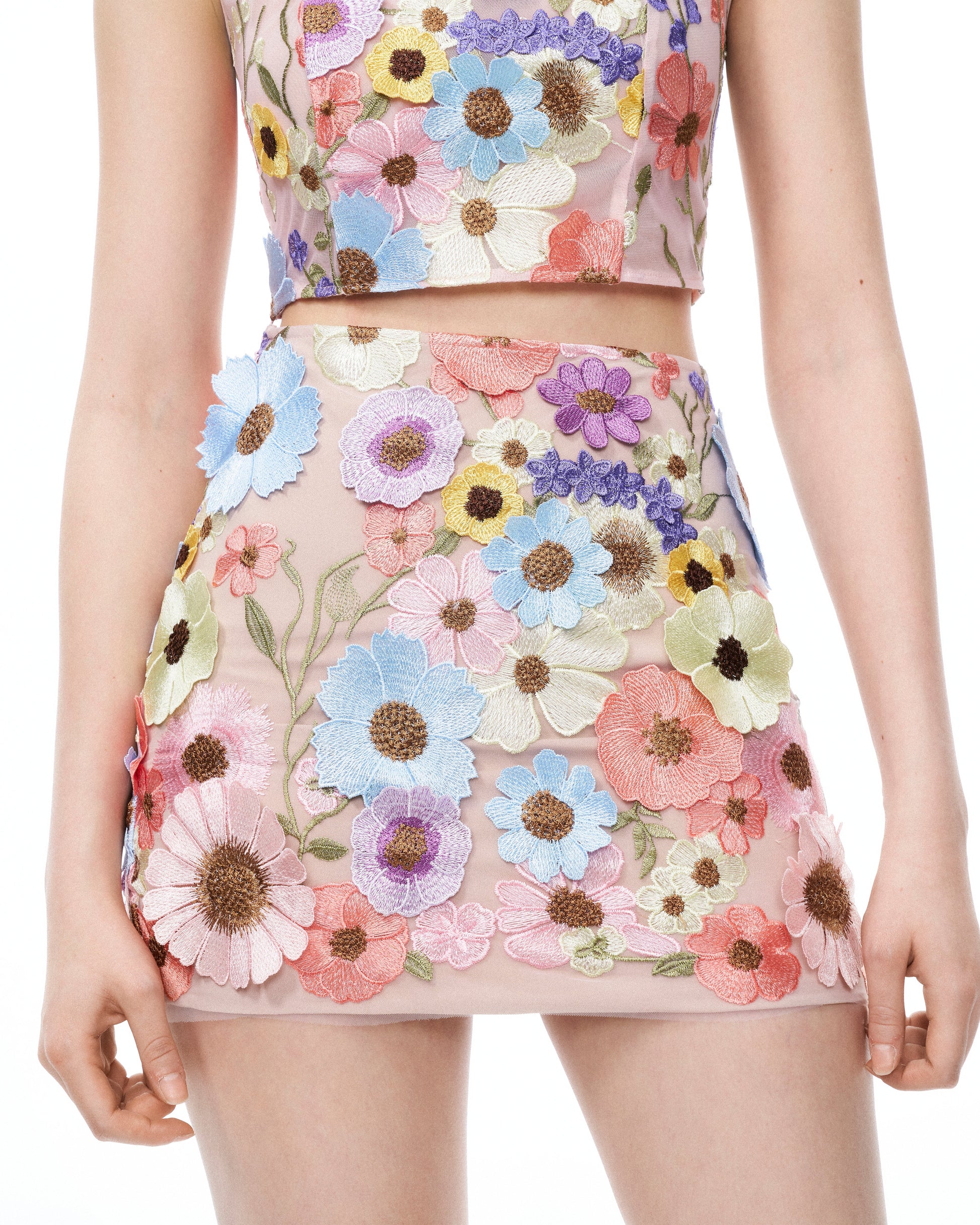 Valentino 3D Floral Embroidered Dress Set - Pastel Multi